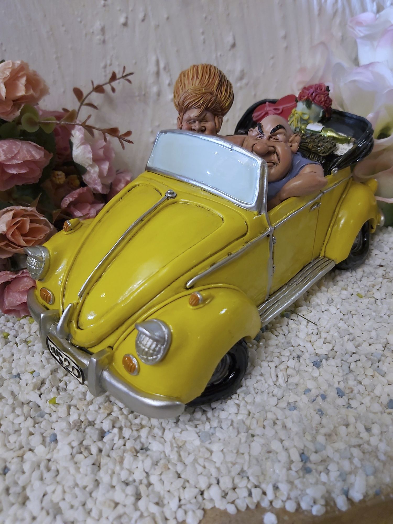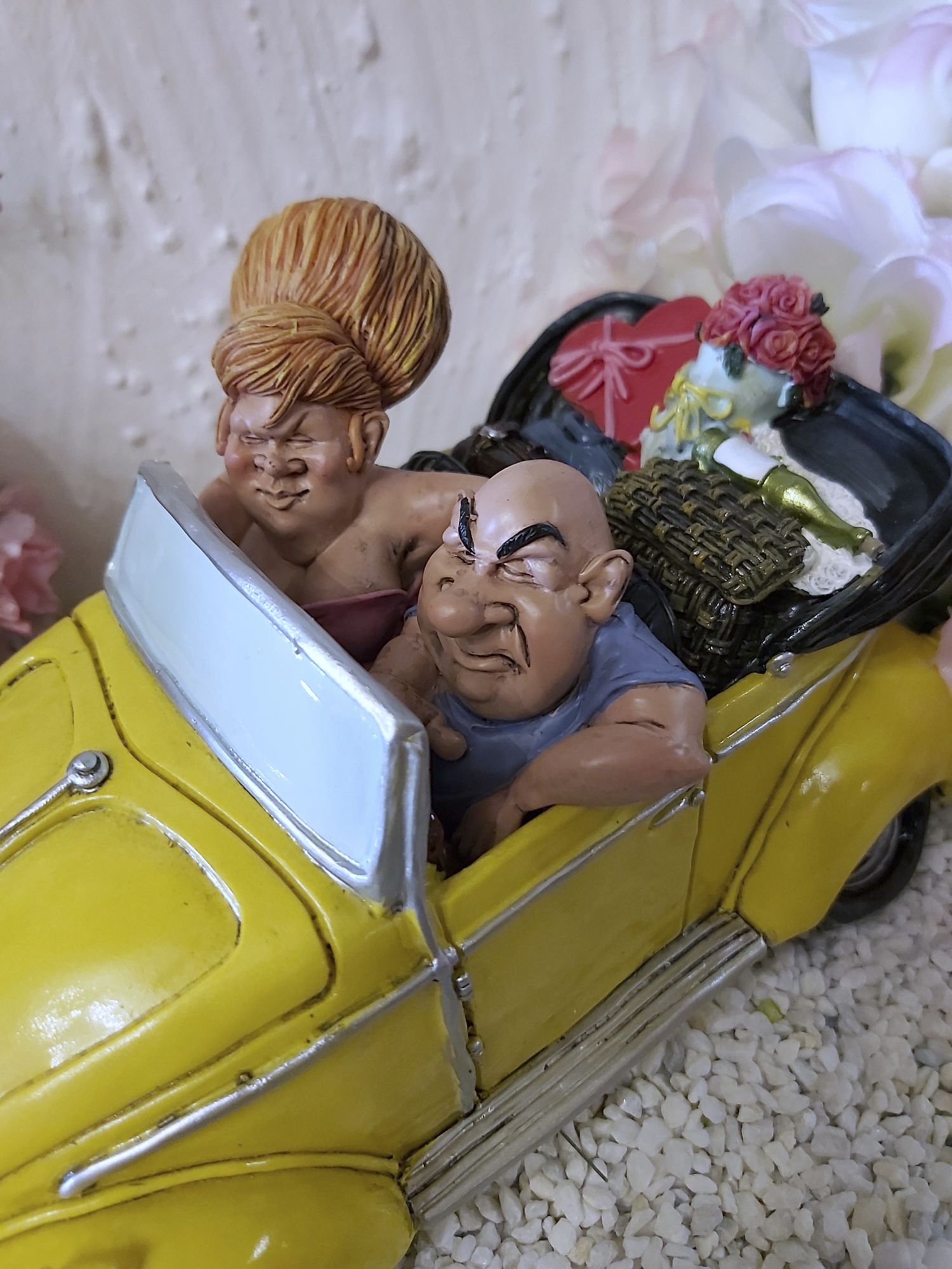 Ein Oldtimer-Cabrio liebevoll gestaltet mit Figuren auf Reisen und Gepäck