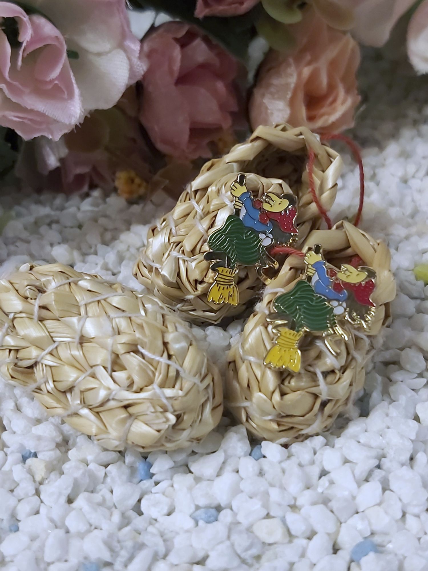 Mit einer kleinen handgefertigten Hexe aus Metall, farbig und goldfarbig umrandet. Sehr edel gefertigt.