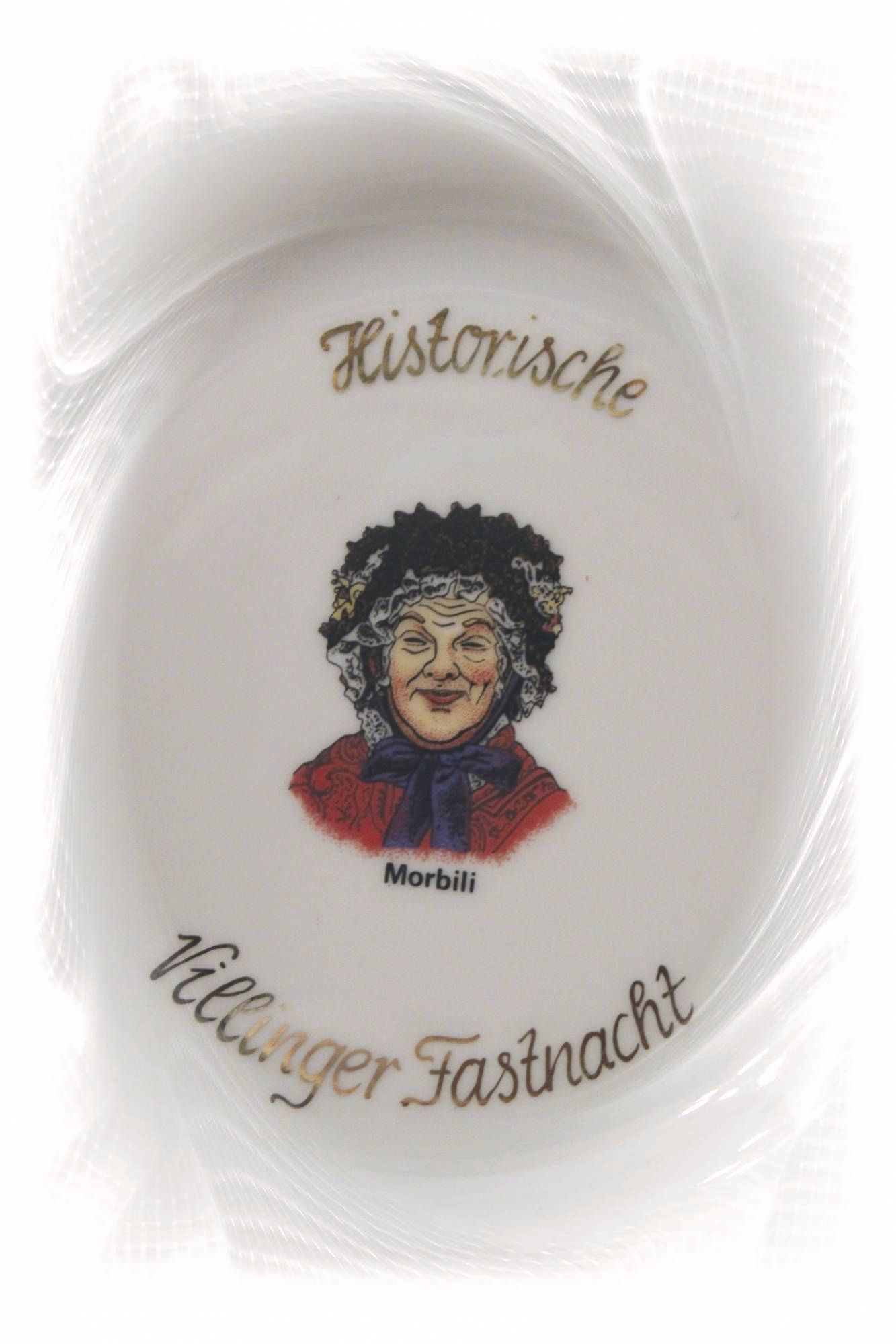 Hier ein Wandteller mit dem Motiv vom Villinger Morbili mit der edlen Radhaube aus Villingen im Schwarzwald