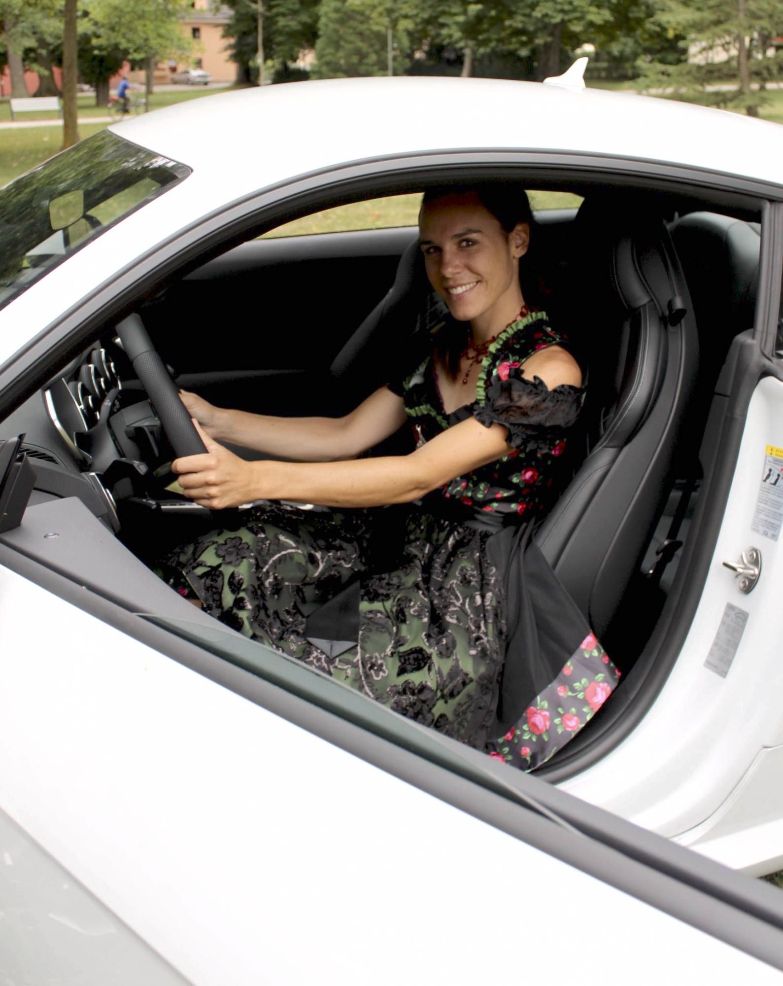 Der Rock in schwarz mit edler Borte, welche sich im Oberteil wiederspiegelt, der edlen aufgemachten Doppelschürze in seidigem grün, darüber die feine durchsichtige beflockte Schürze in edlem schwarz, runden das gesamtbild perfekt ab.