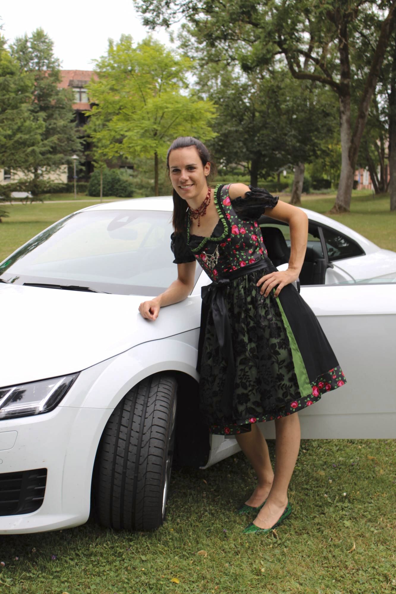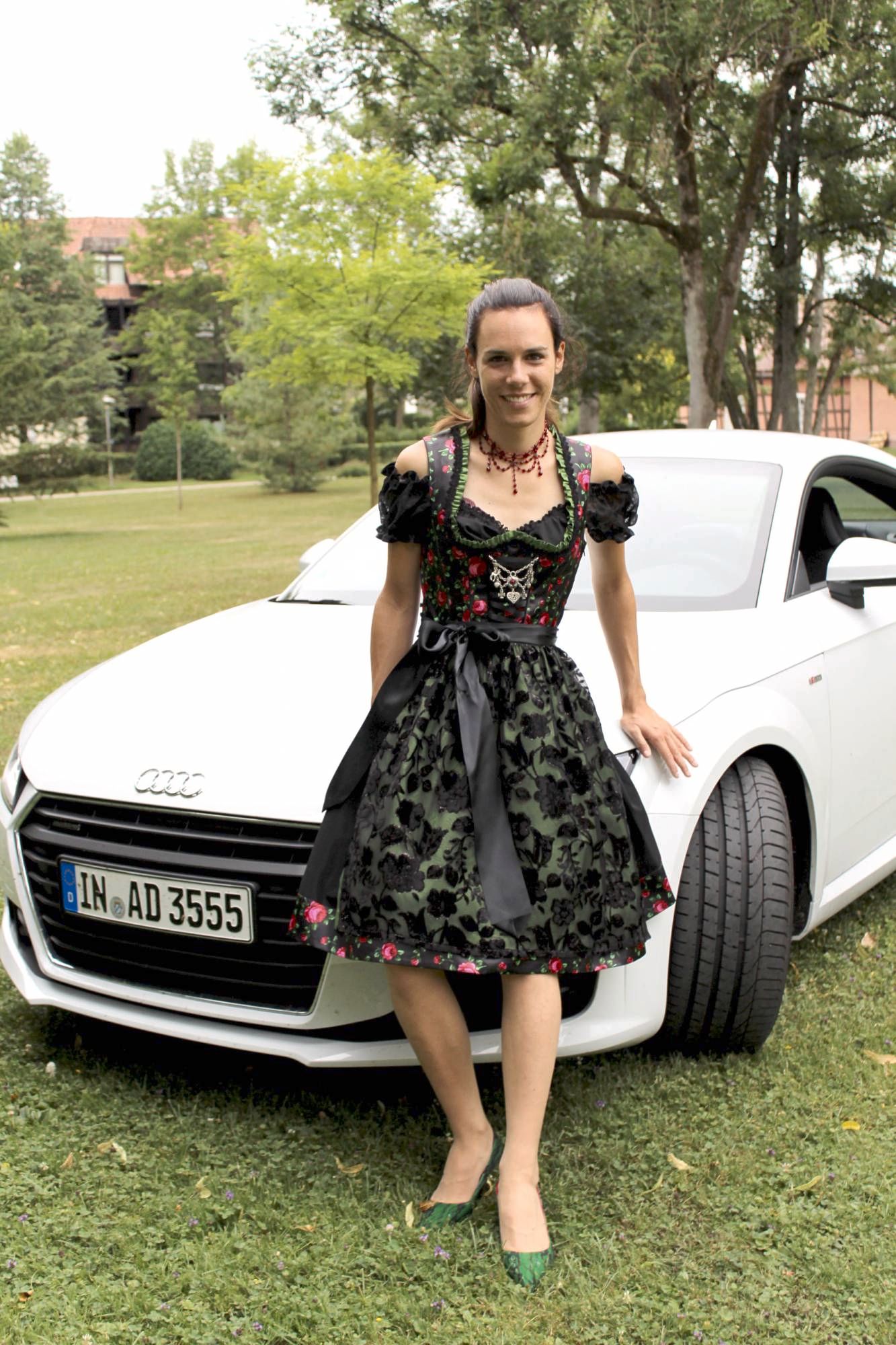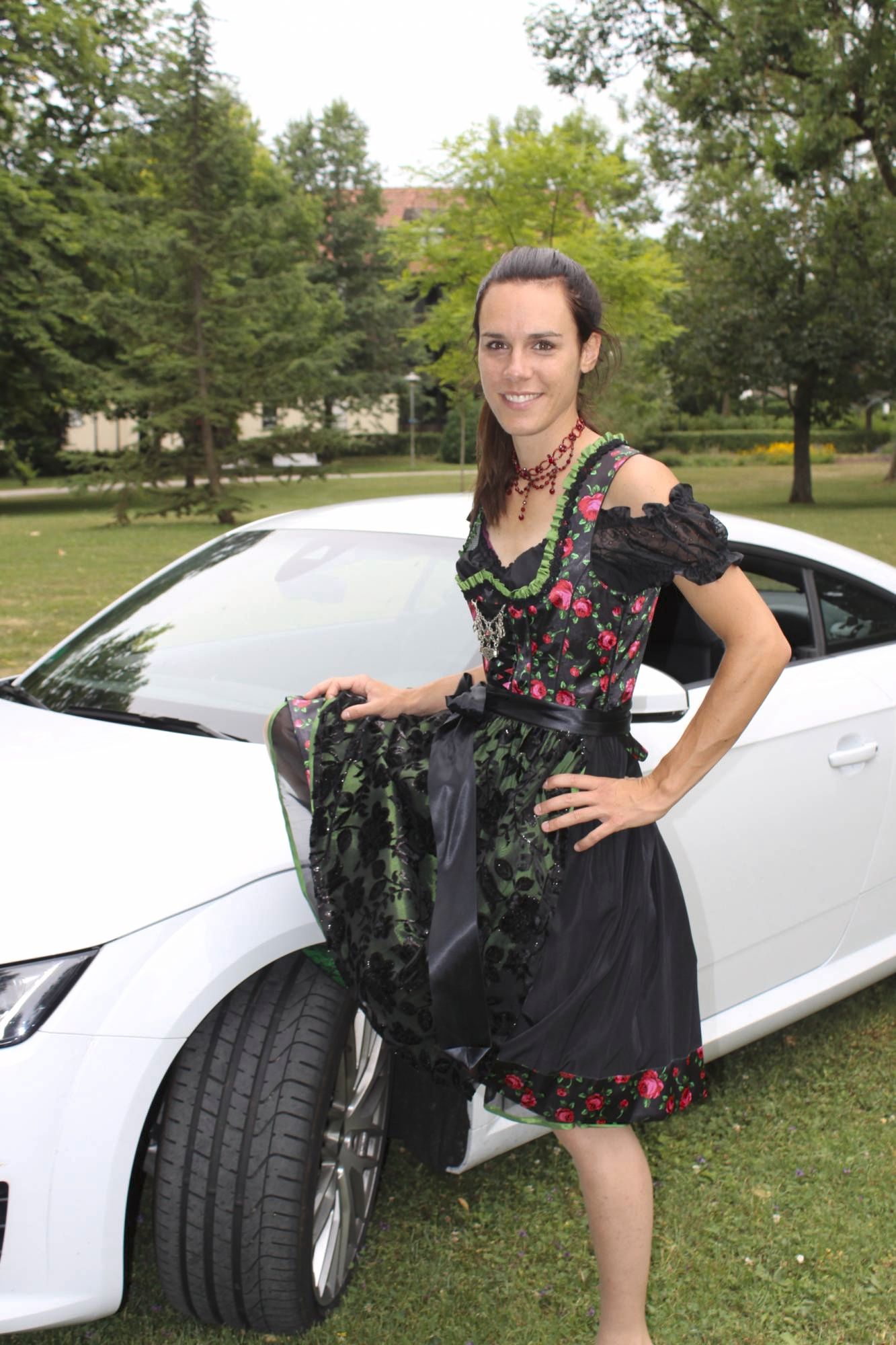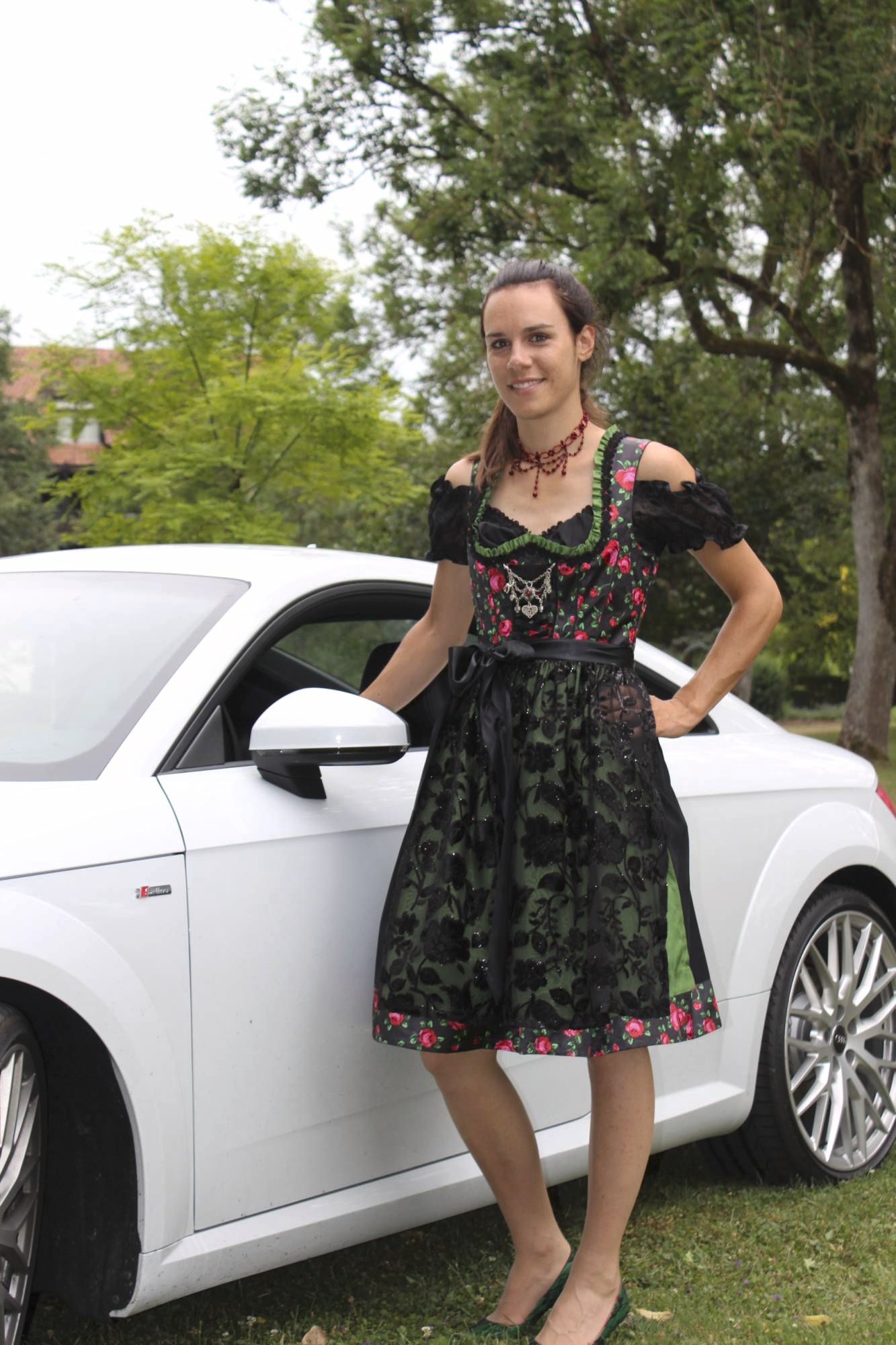 Hier zeigen wir Ihnen ein herrliches dirndl in den bezaubernden Edelfarben schwarz, grün und rot.