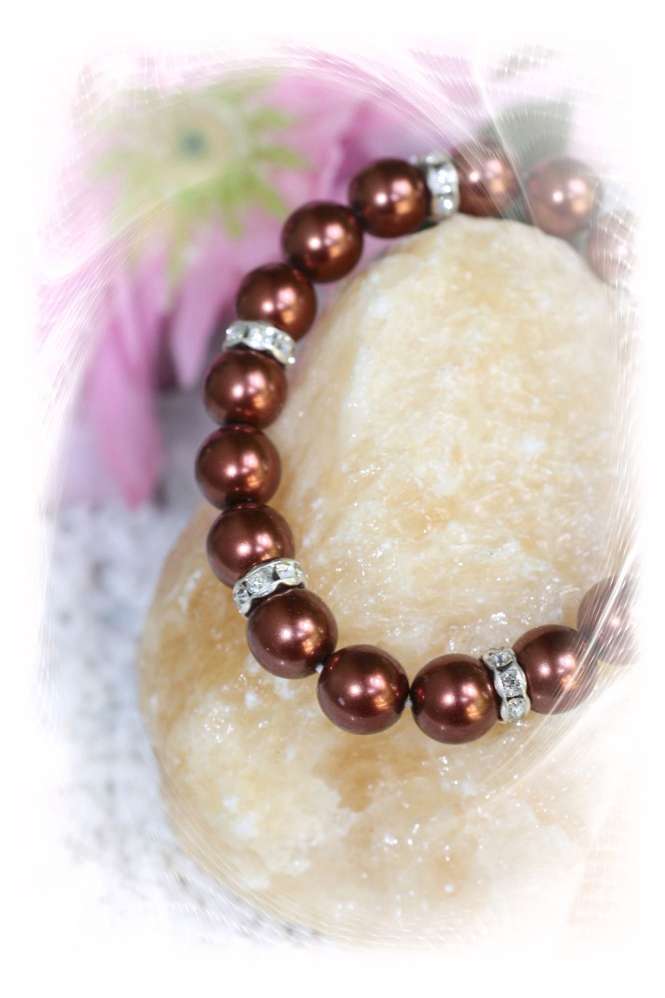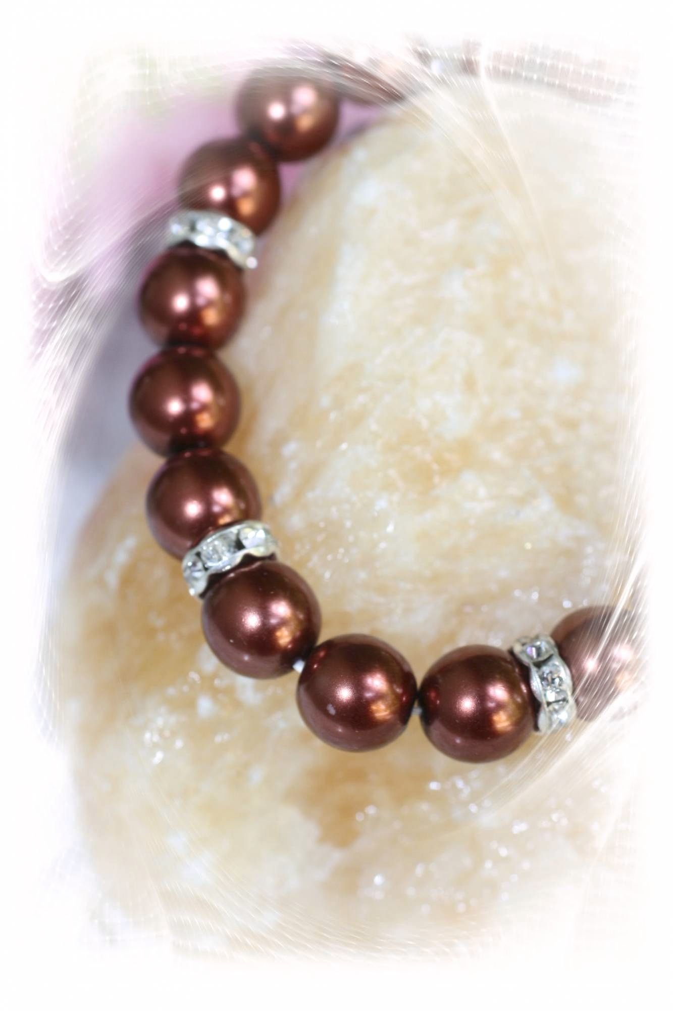 Sehr apart und fein gearbeitetes Wachs-Perlenarmband mit glänzenden Schmucksteinen.