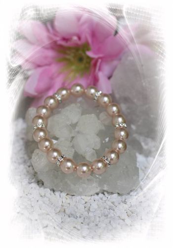 Sehr apart und fein gearbeitetes Wachs-Perlenarmband mit glänzenden Schmucksteinen.