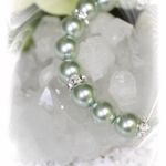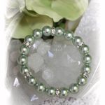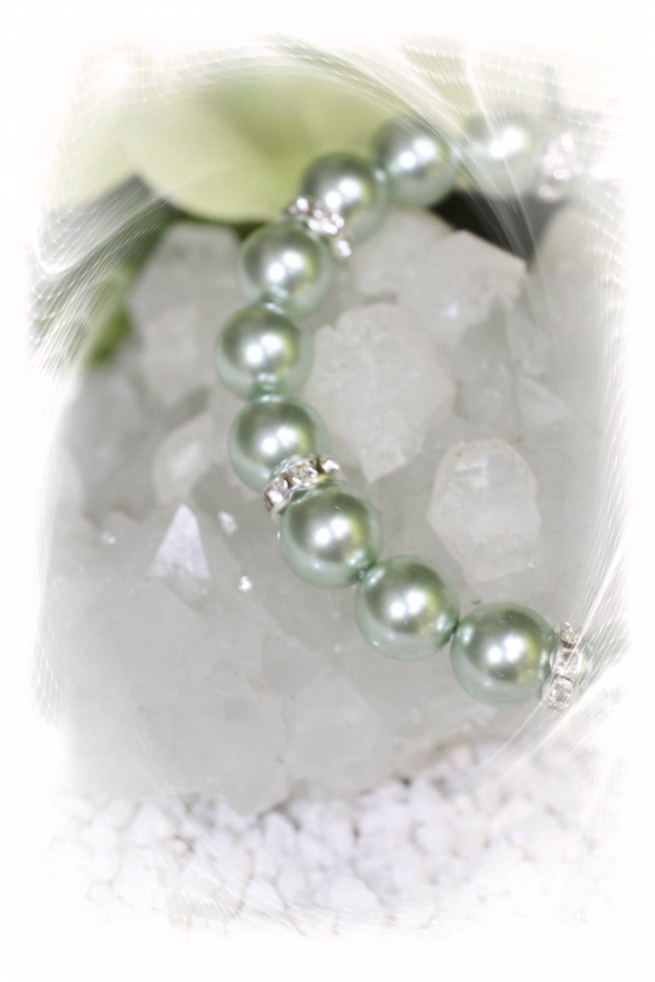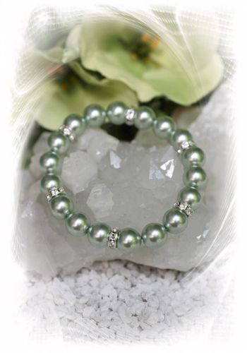 Sehr apart und fein gearbeitetes Wachs-Perlenarmband mit glänzenden Schmucksteinen.
