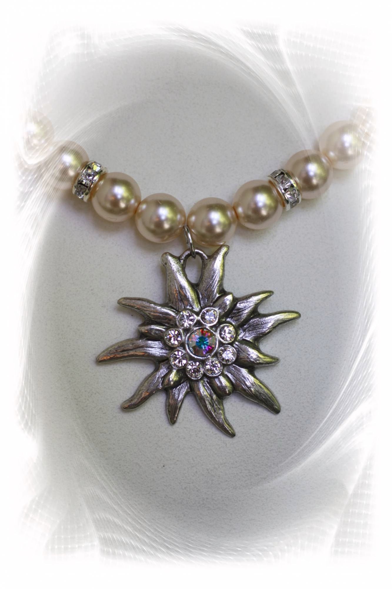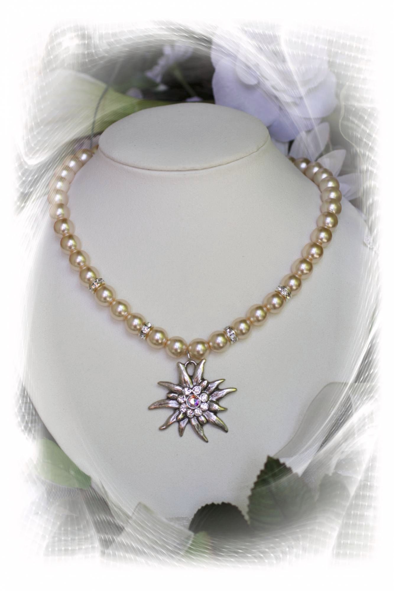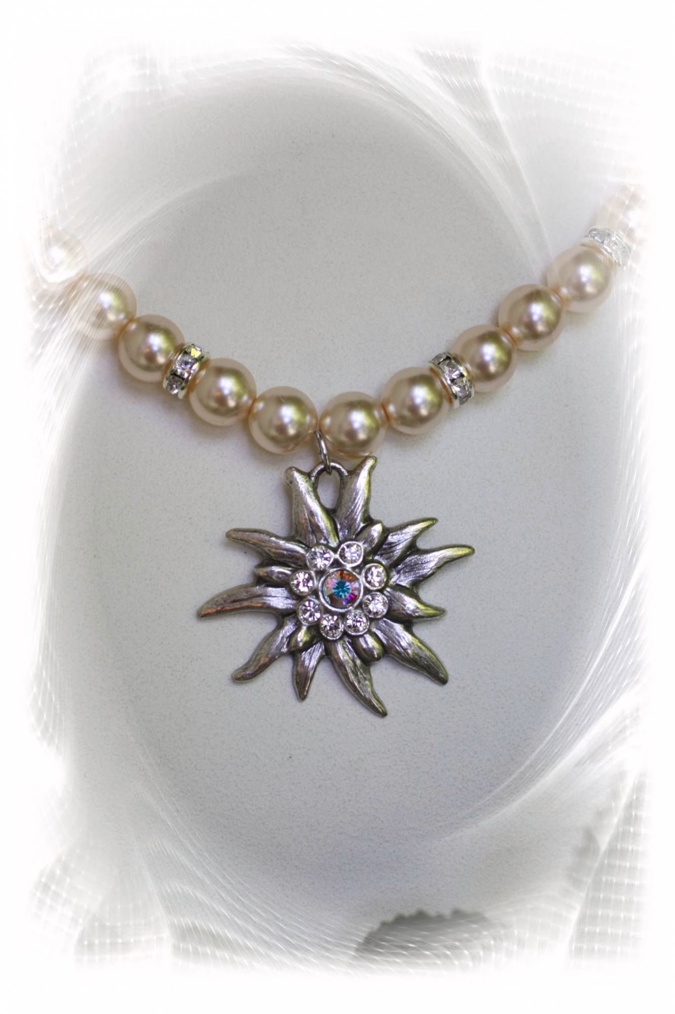 Sehr apart, edel und fein gearbeitete Wachs-Perlenkette mit Edelweißanhänger