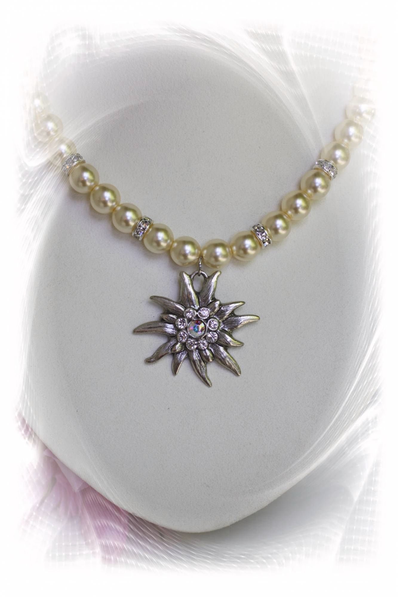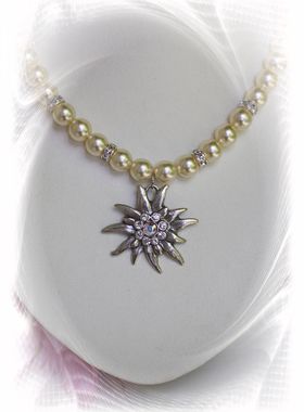Sehr apart, edel und fein gearbeitete Wachs-Perlenkette mit Edelweißanhänger