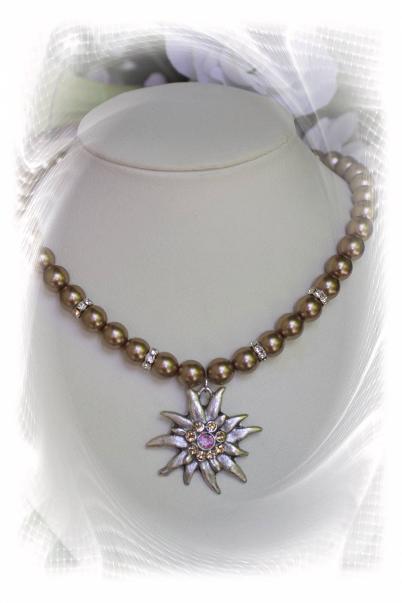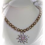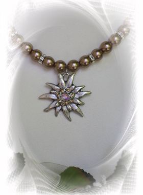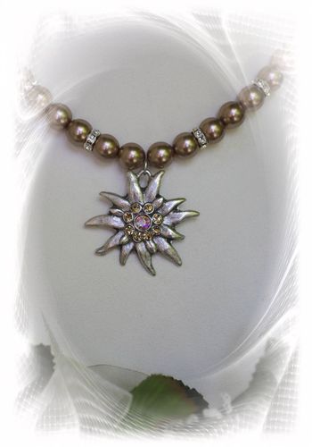 Sehr apart, edel und fein gearbeitete Wachs-Perlenkette mit Edelweißanhänger