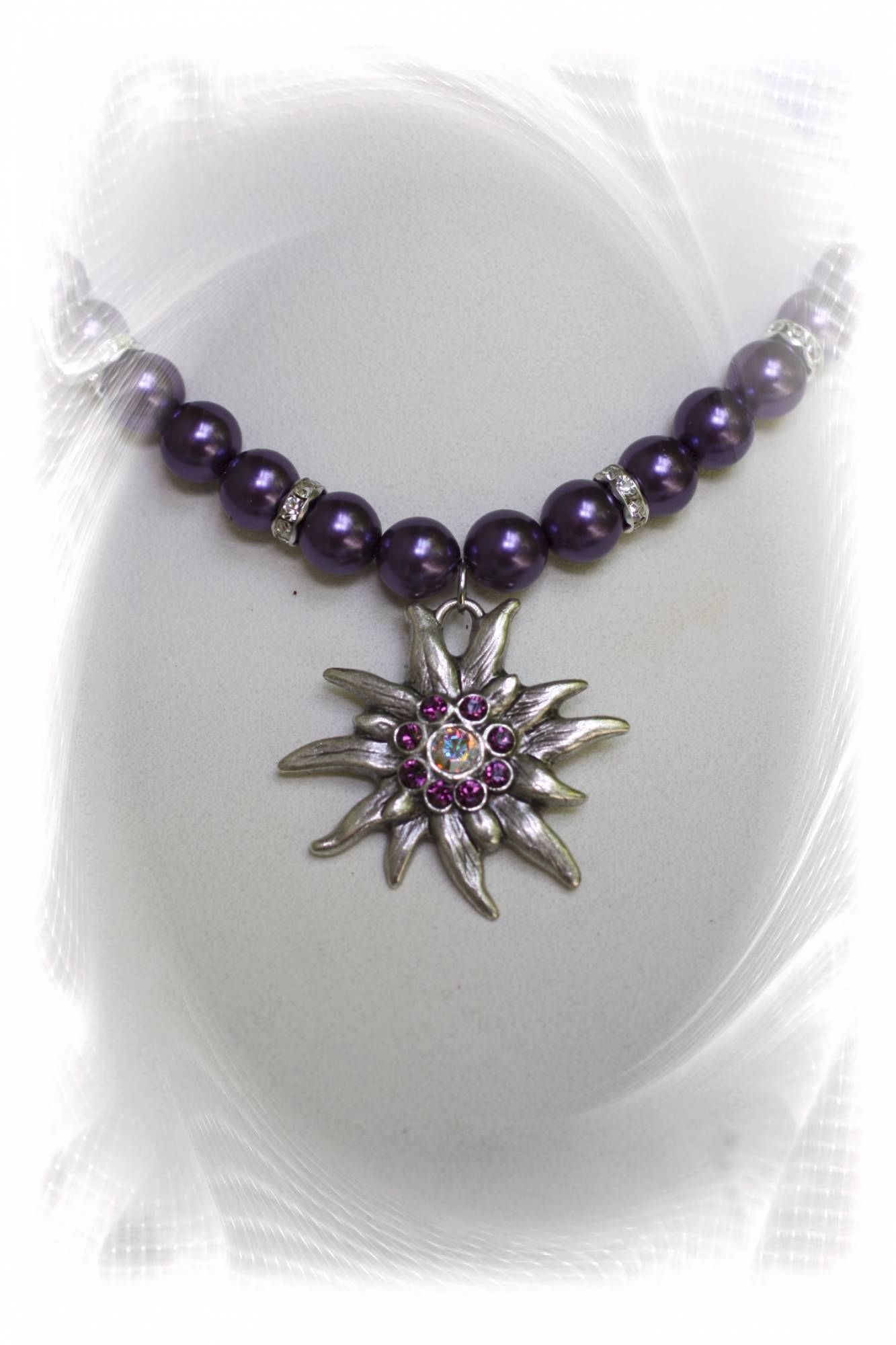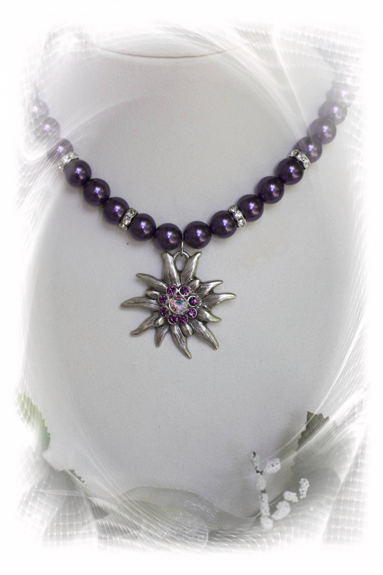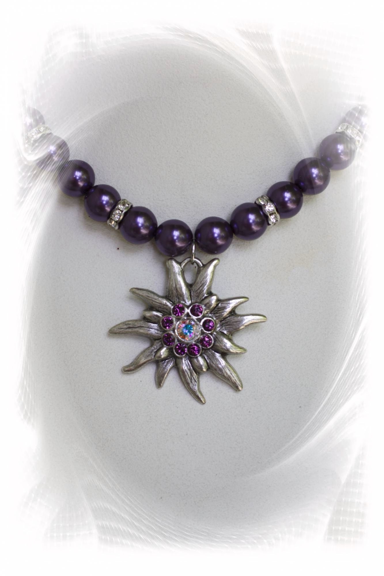 Sehr apart, edel und fein gearbeitete Wachs-Perlenkette mit Edelweißanhänger