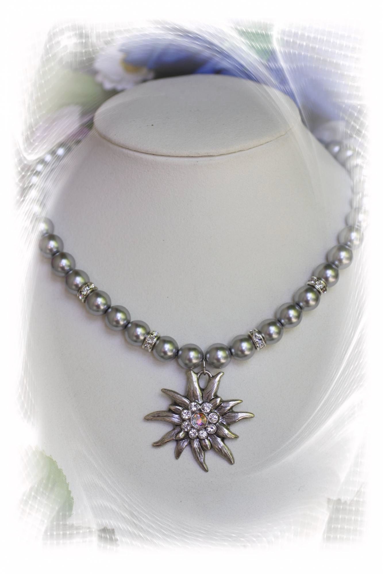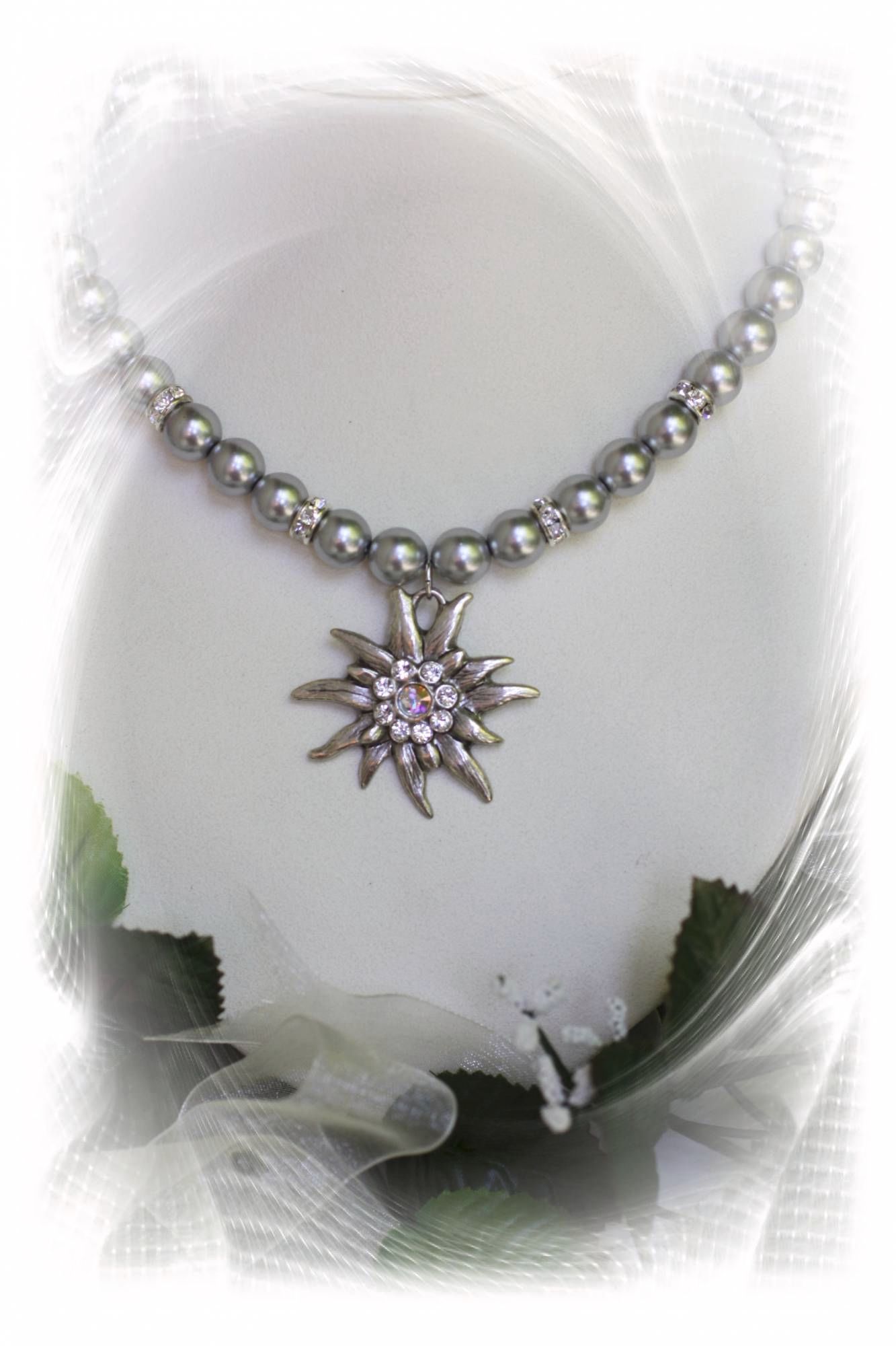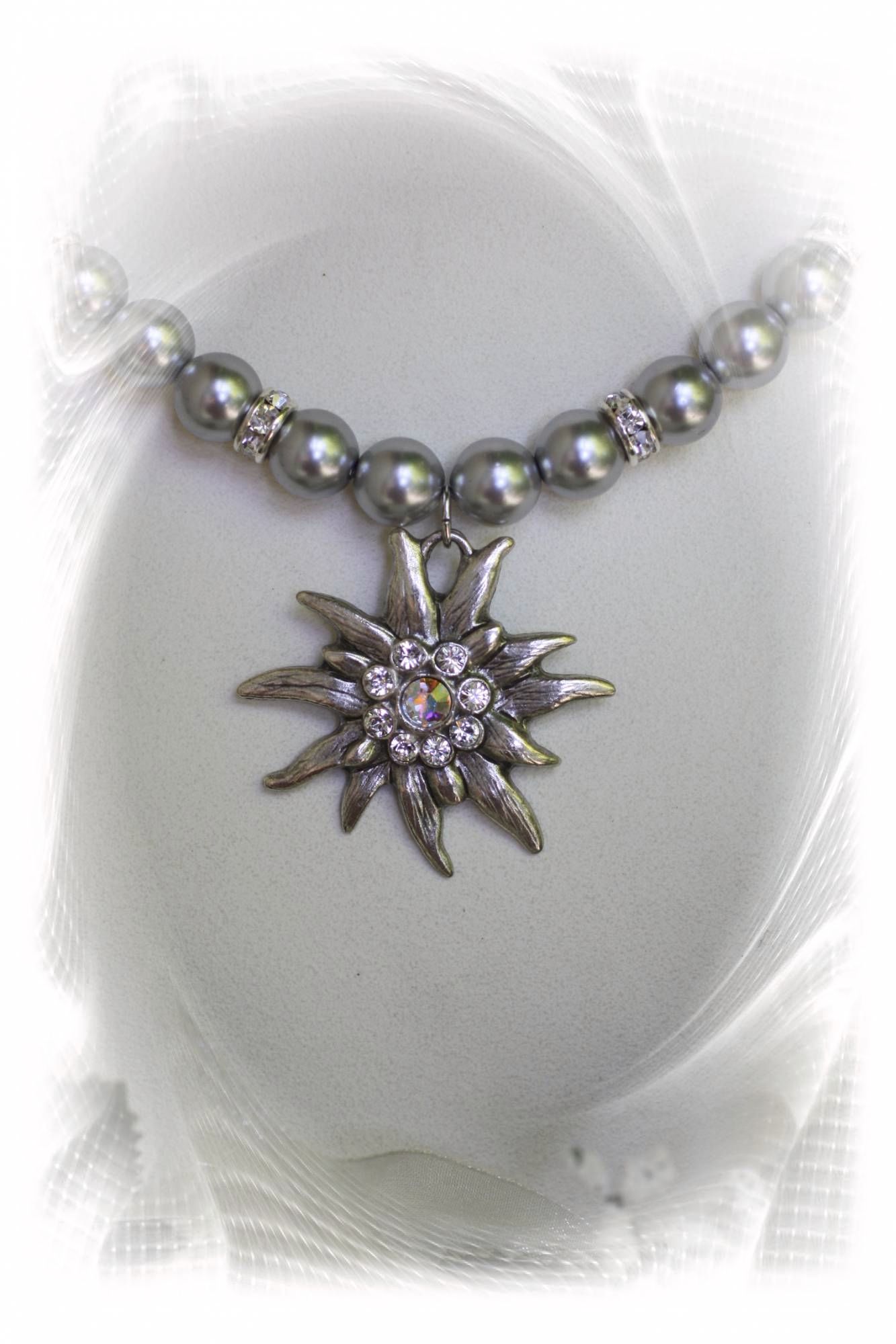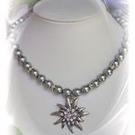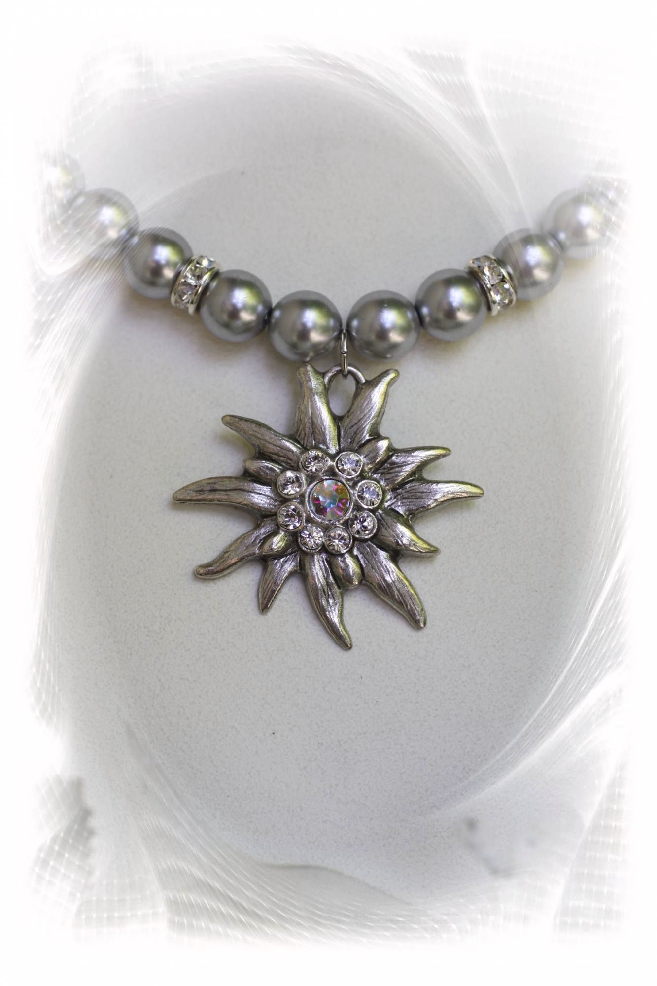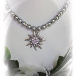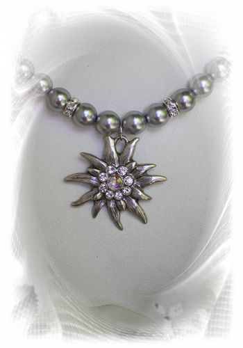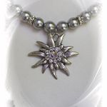 Sehr apart, edel und fein gearbeitete Wachs-Perlenkette mit Edelweißanhänger
