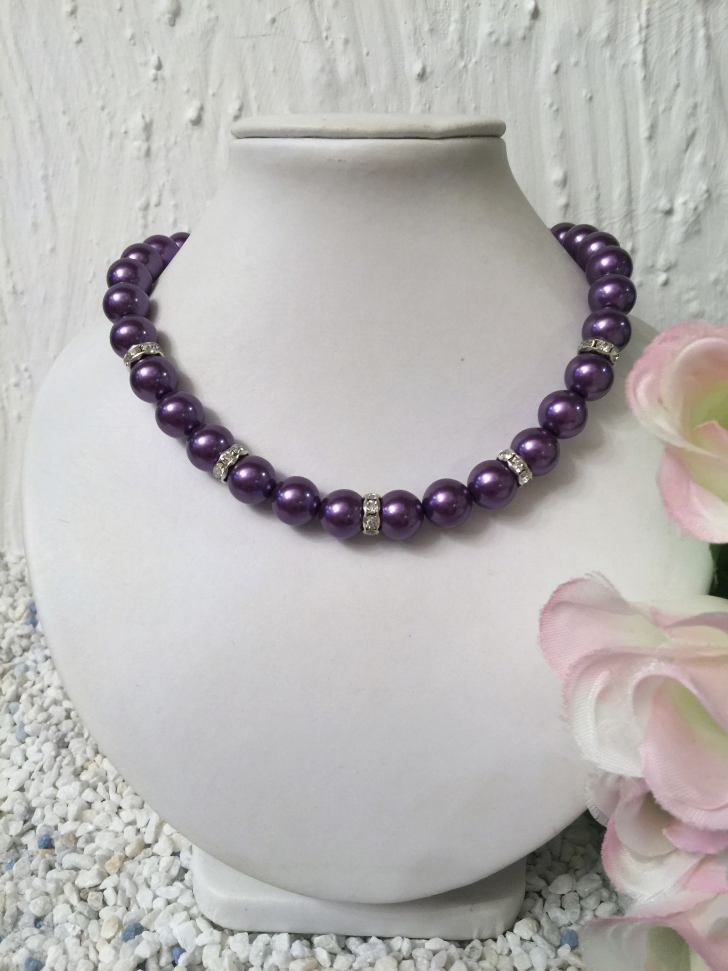 Sehr apart und fein gearbeitete Wachs-Perlenkette mit glitzernden Schmucksteinchen.