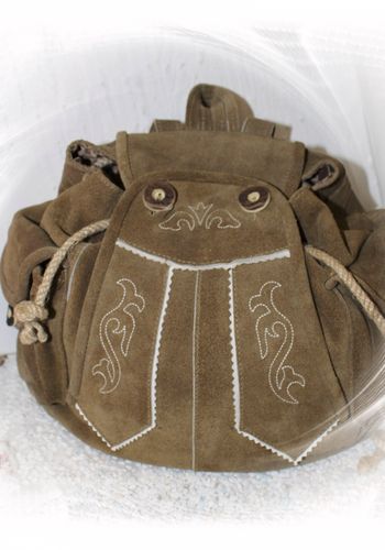 Dieser schöne Lederrucksack ist aufgemacht, wie eine Trachtenlederhose.