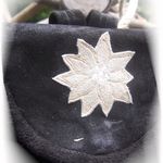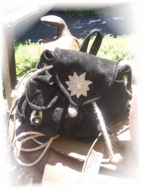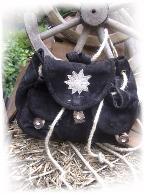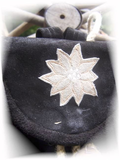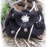 Vorne zwei Taschen und auf der Schließe ein Edelweißsticker.