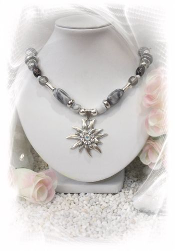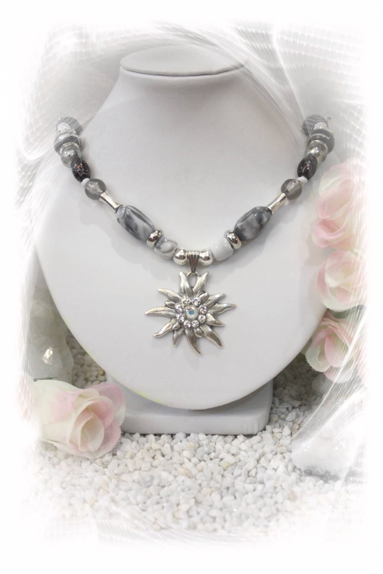 Abgerundet wird das Gesamtbild dieser edlen Kette durch den schönen Edelweißhänger mit echten funkelnden Swarovskisteinen.