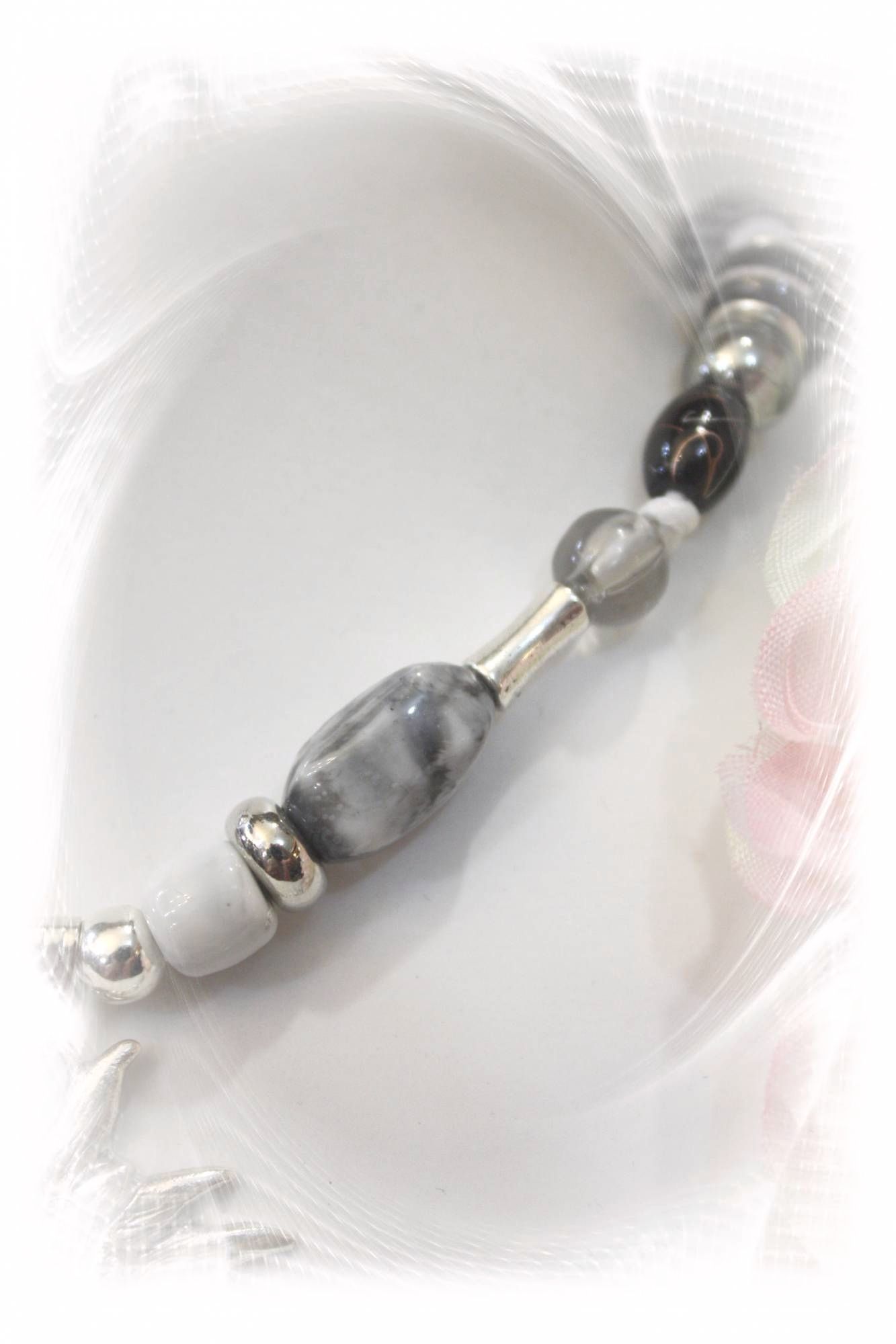 Eine herrliche Schmuckkette von der Designer und Künstlerin Elke Sieroka in dezenten weiß, grau und schwarzen Tönen gehalten.