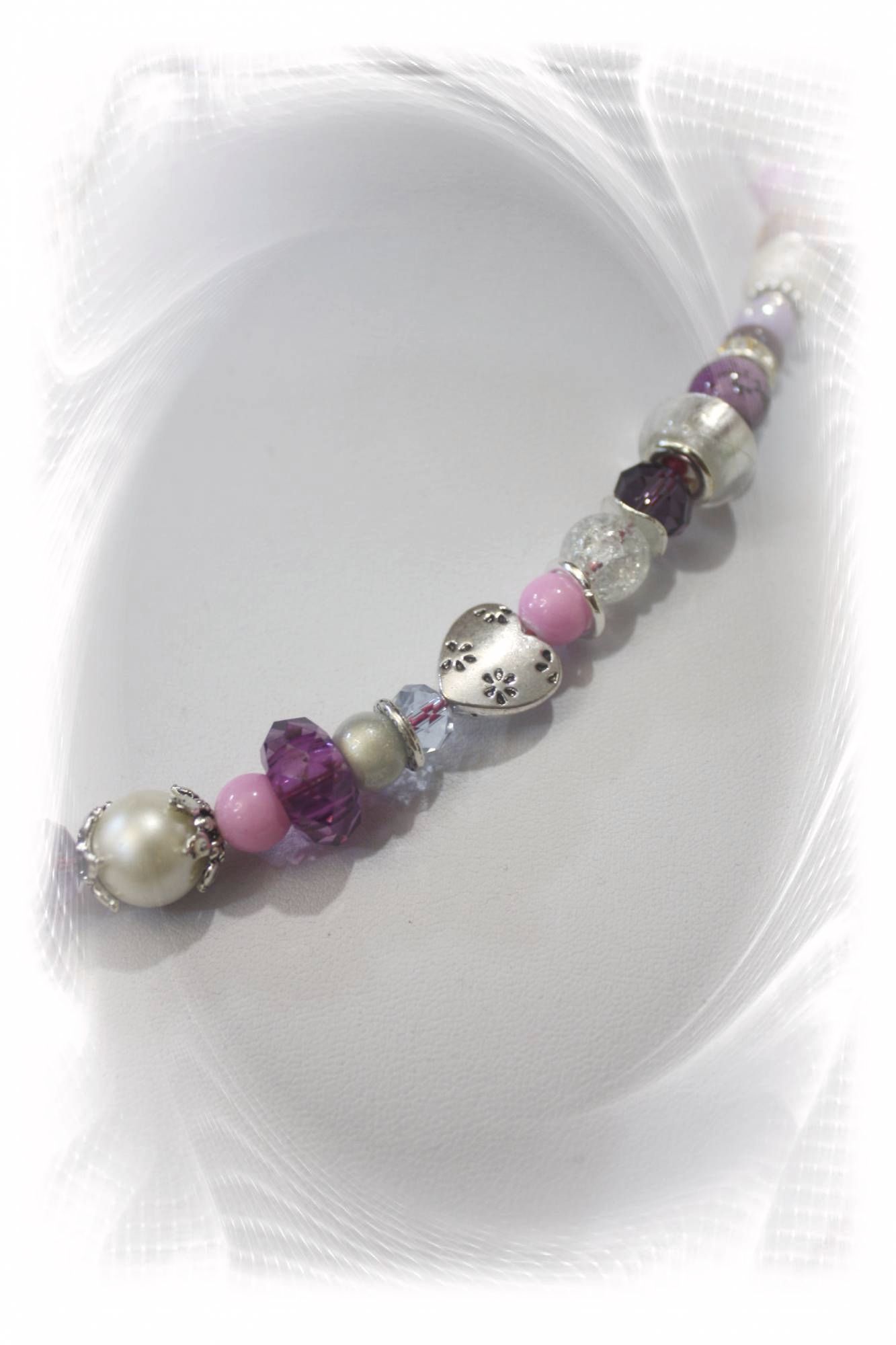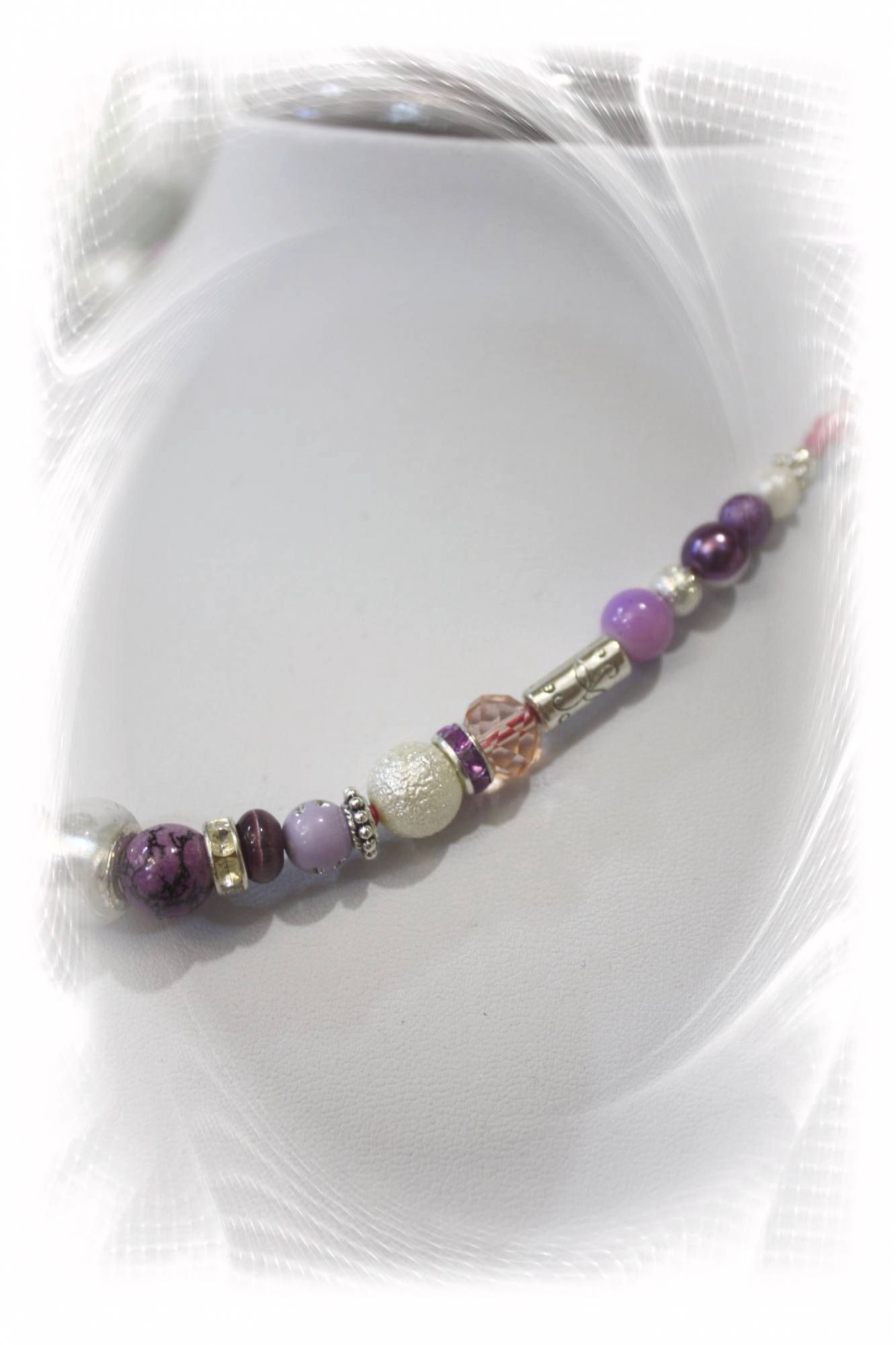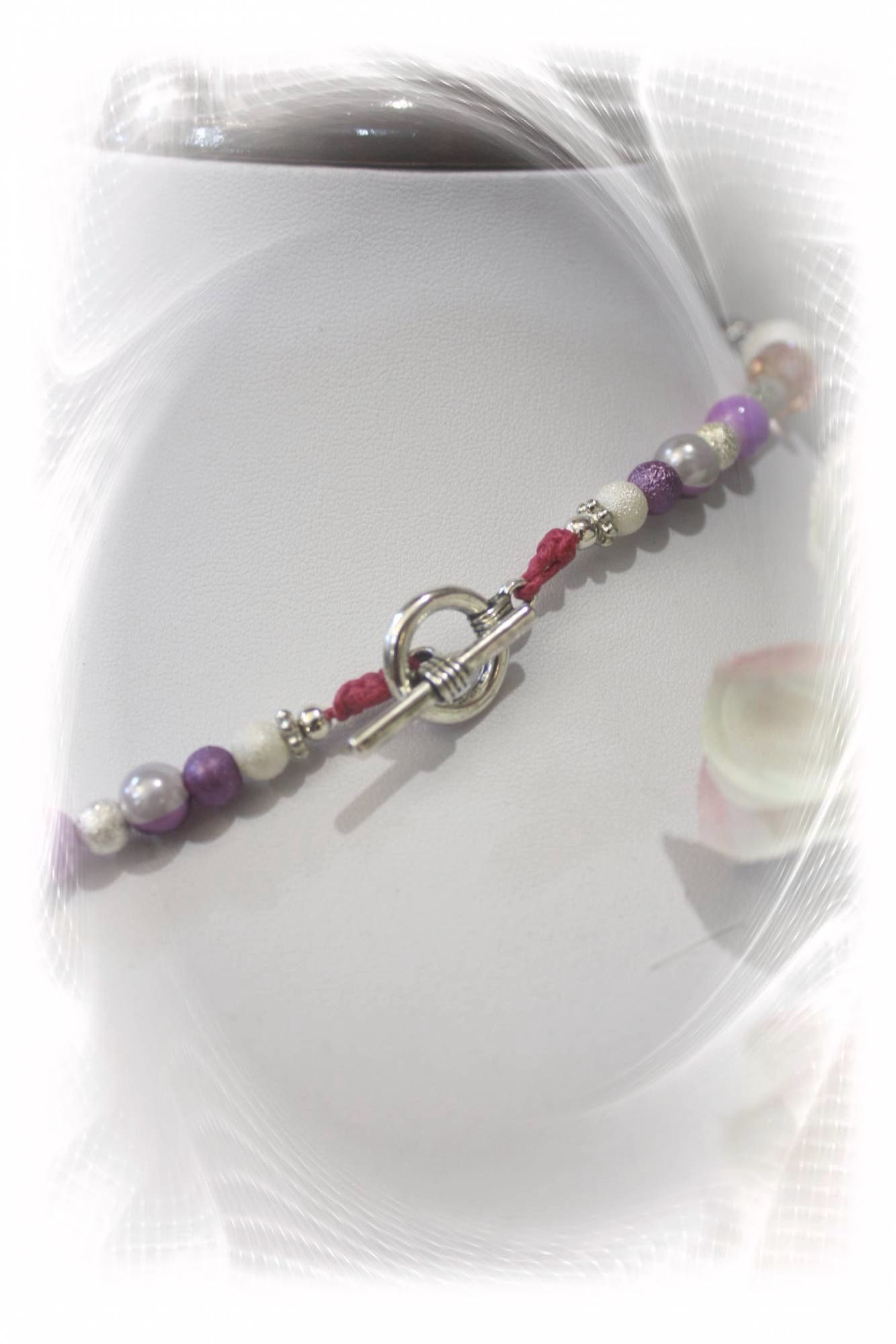 Die Kette ist in Rosa, Lila, Pink und Rosefarben gehalten.