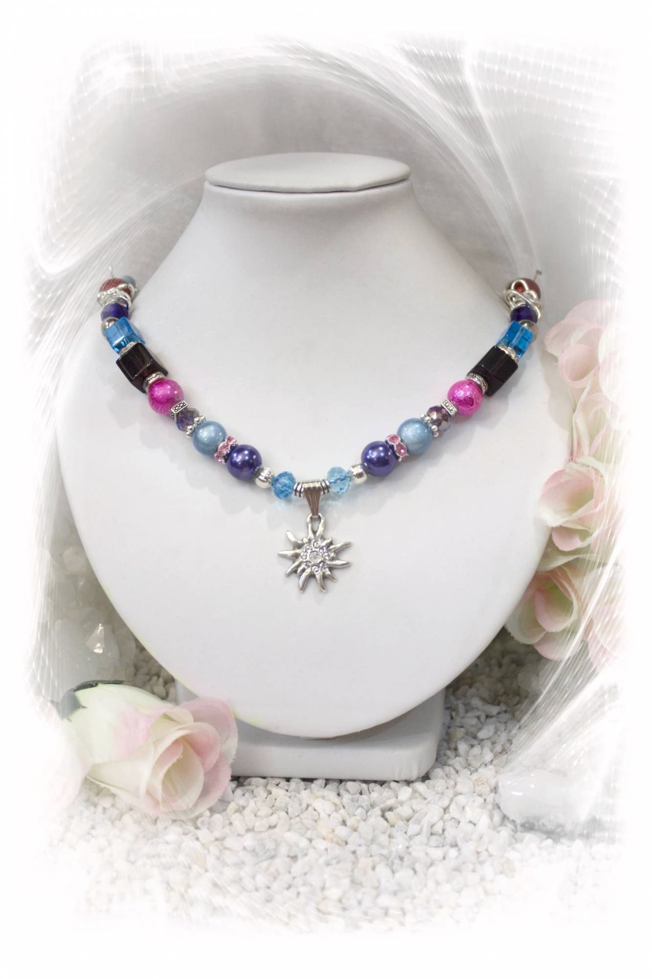Abgerundet wird das Gesamtbild dieser edlen Kette durch einen ebenfalls dezenten Edelweißhänger mit echten funkelnden Swarovskisteinen.
