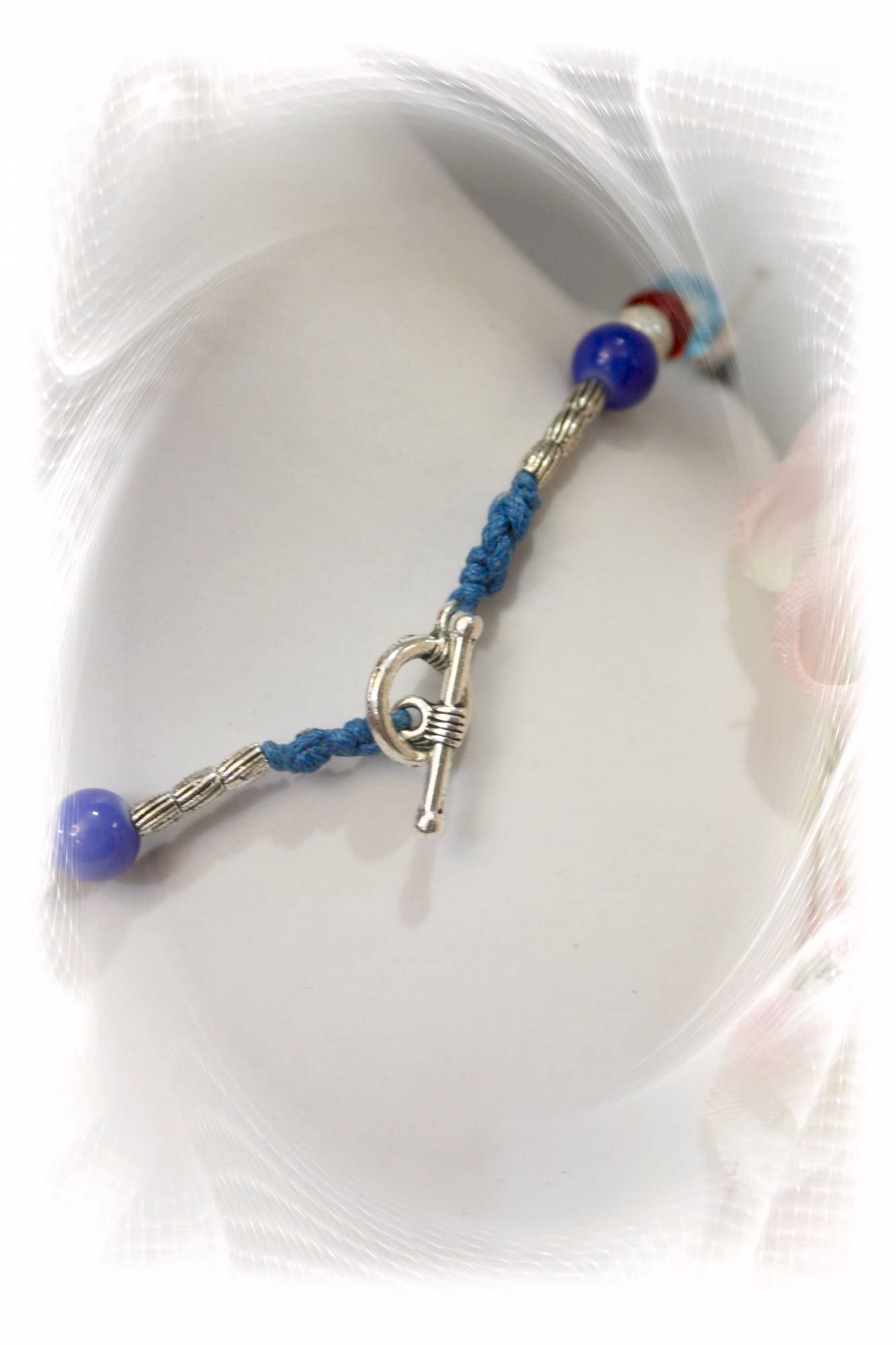 Die Schmuckelemente sind auf gewachster Baumwolle aufgefädelt.