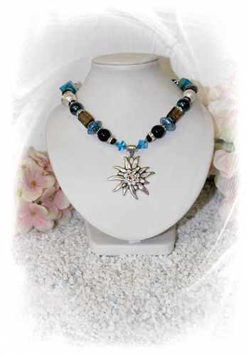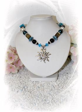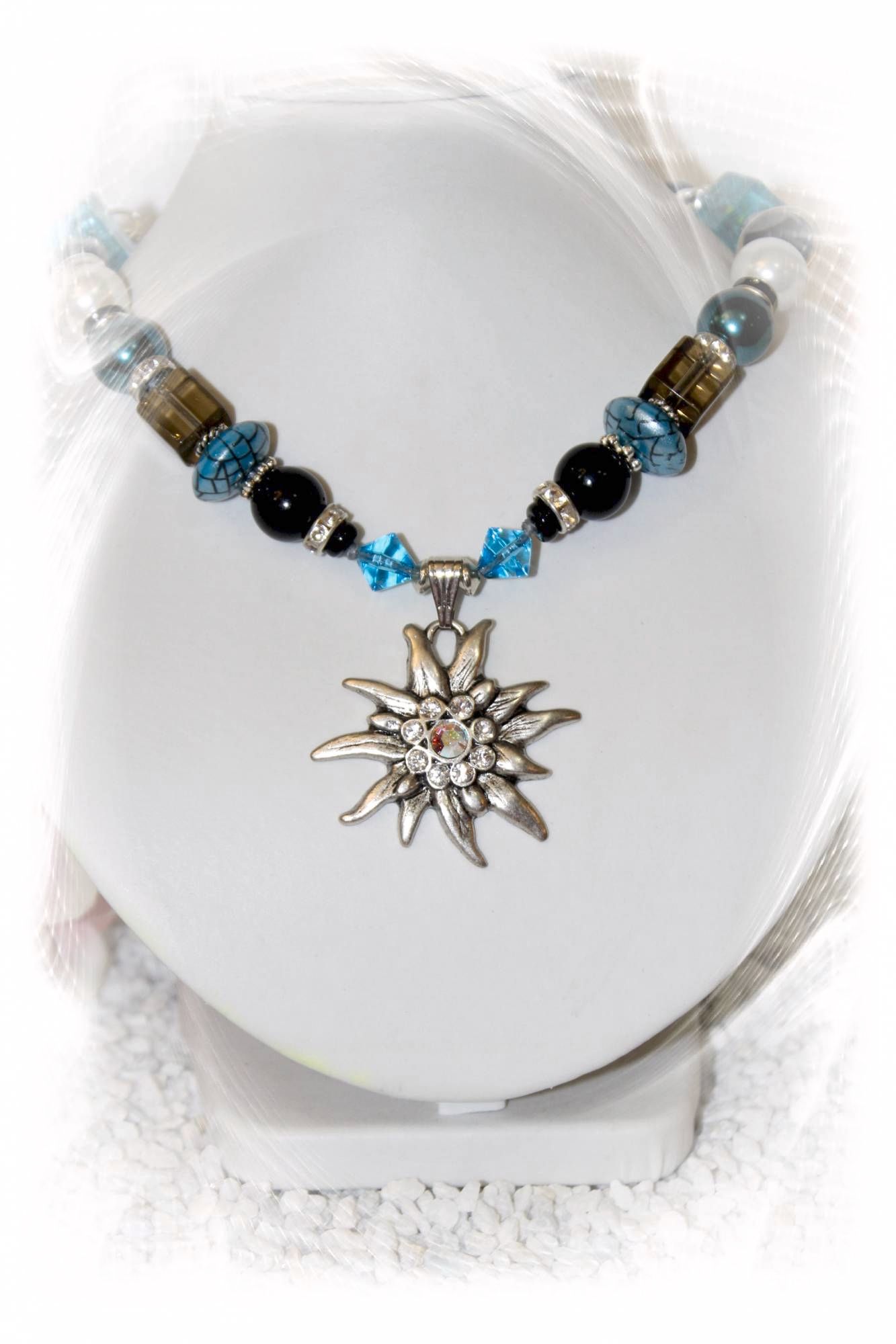 Abgerundet wird das Gesamtbild dieser edlen Kette durch einen ebenfalls dezenten Edelweißhänger mit echten funkelnden Swarovskisteinen.