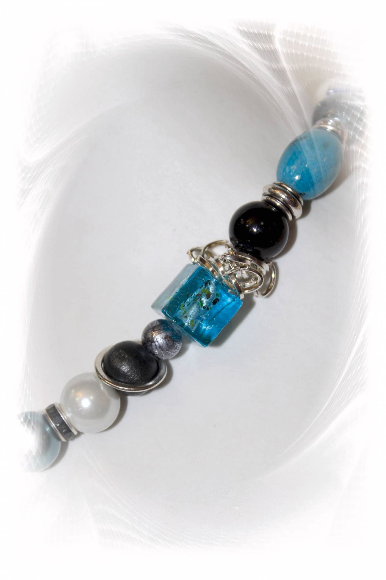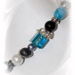 Eine herrliche Schmuckkette von der Designer und Künstlerin Elke Sieroka in dezenten weiß, blau,türkis und dunkelblauen Tönen gehalten.