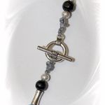 Diese Kette ist aus Glasperlen und Schmuckperlen gefertigt.