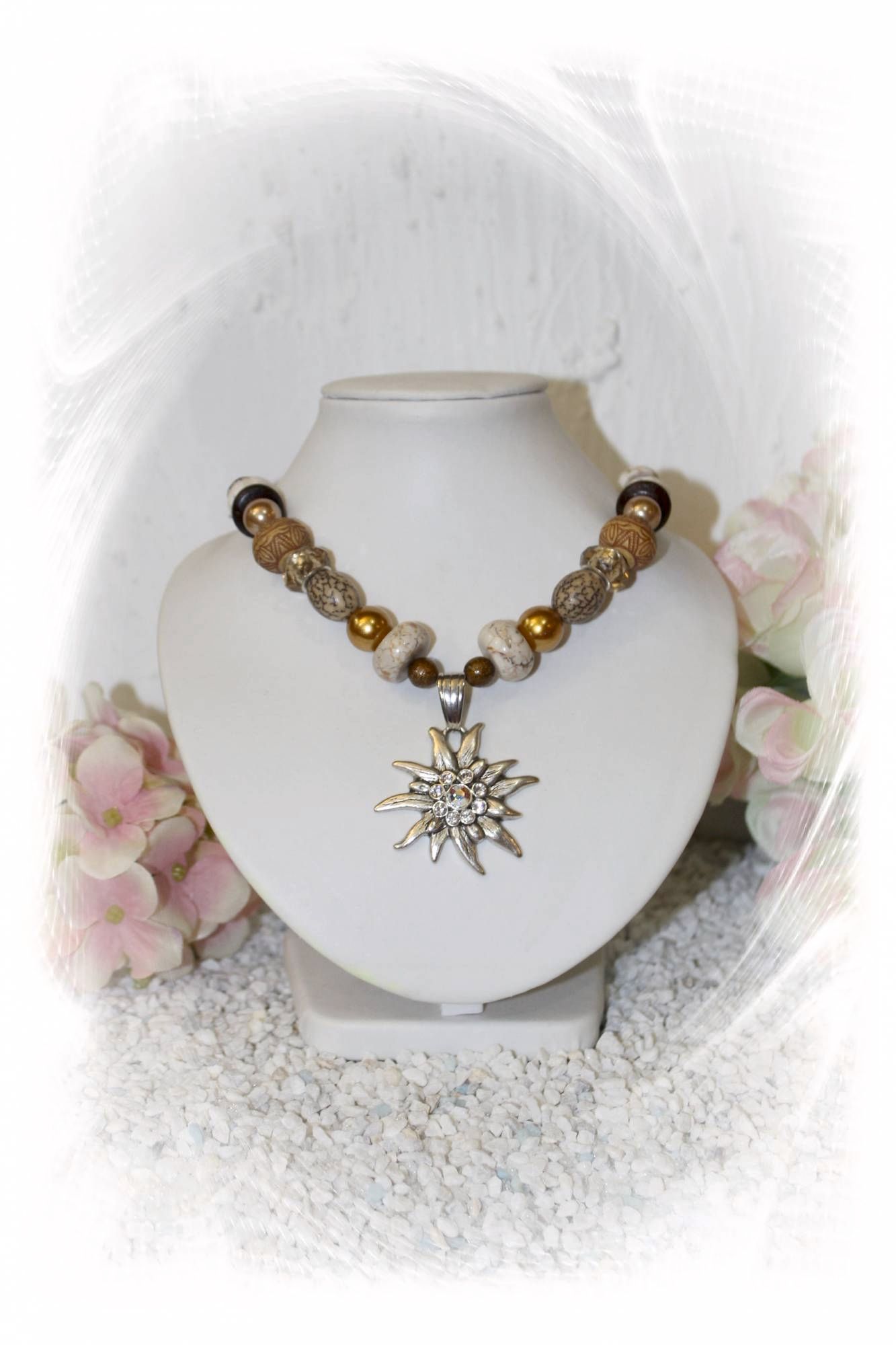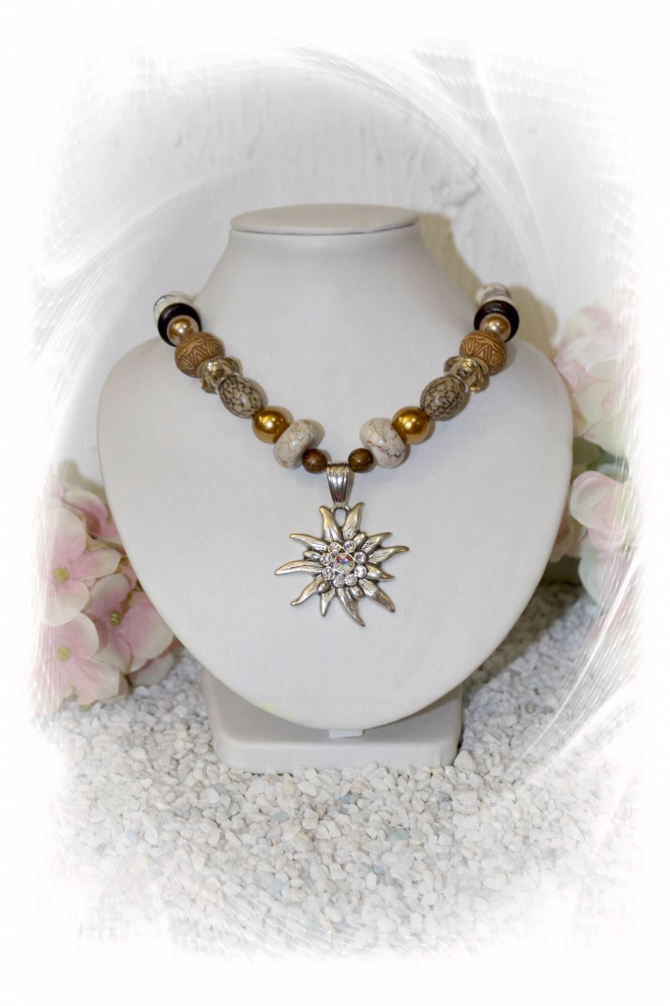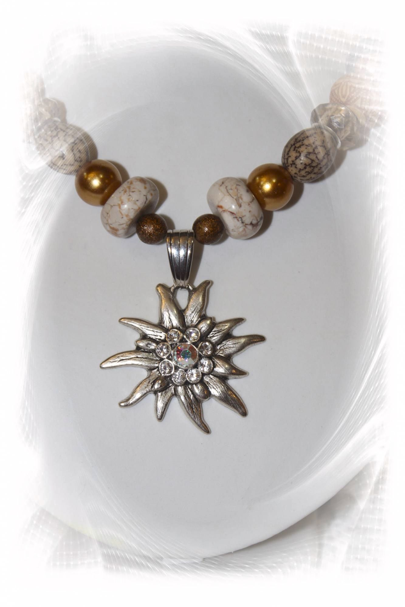Abgerundet wird das Gesamtbild dieser edlen Kette durch den schönen Edelweißhänger mit echten funkelnden Swarovskisteinen.