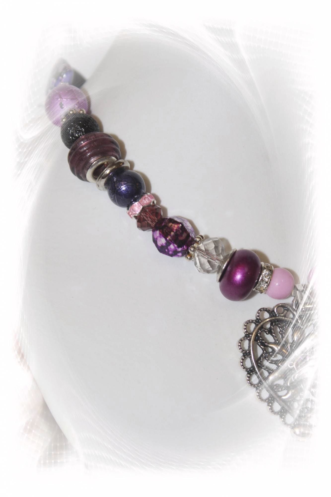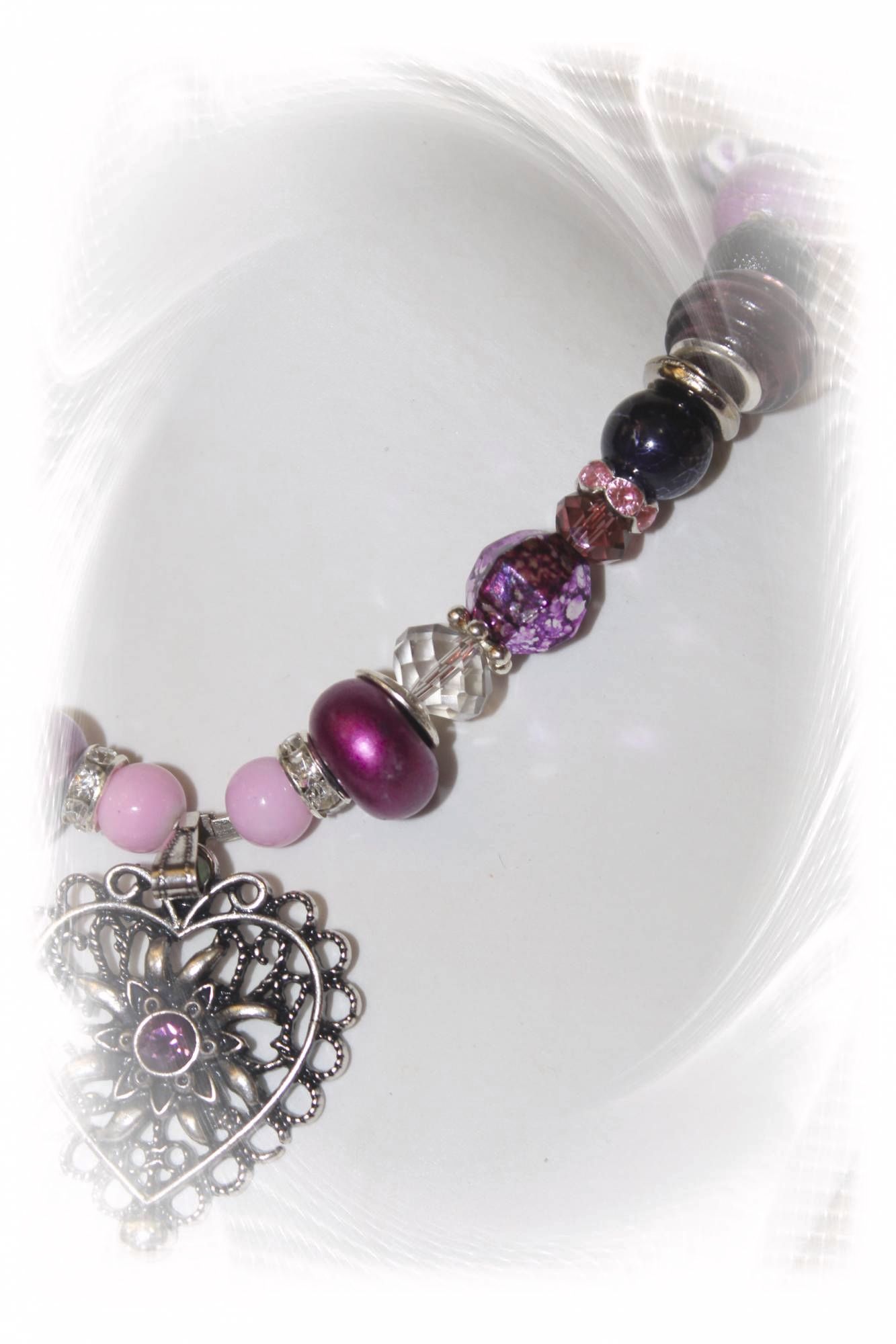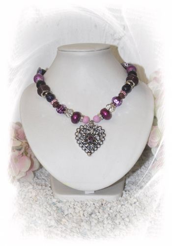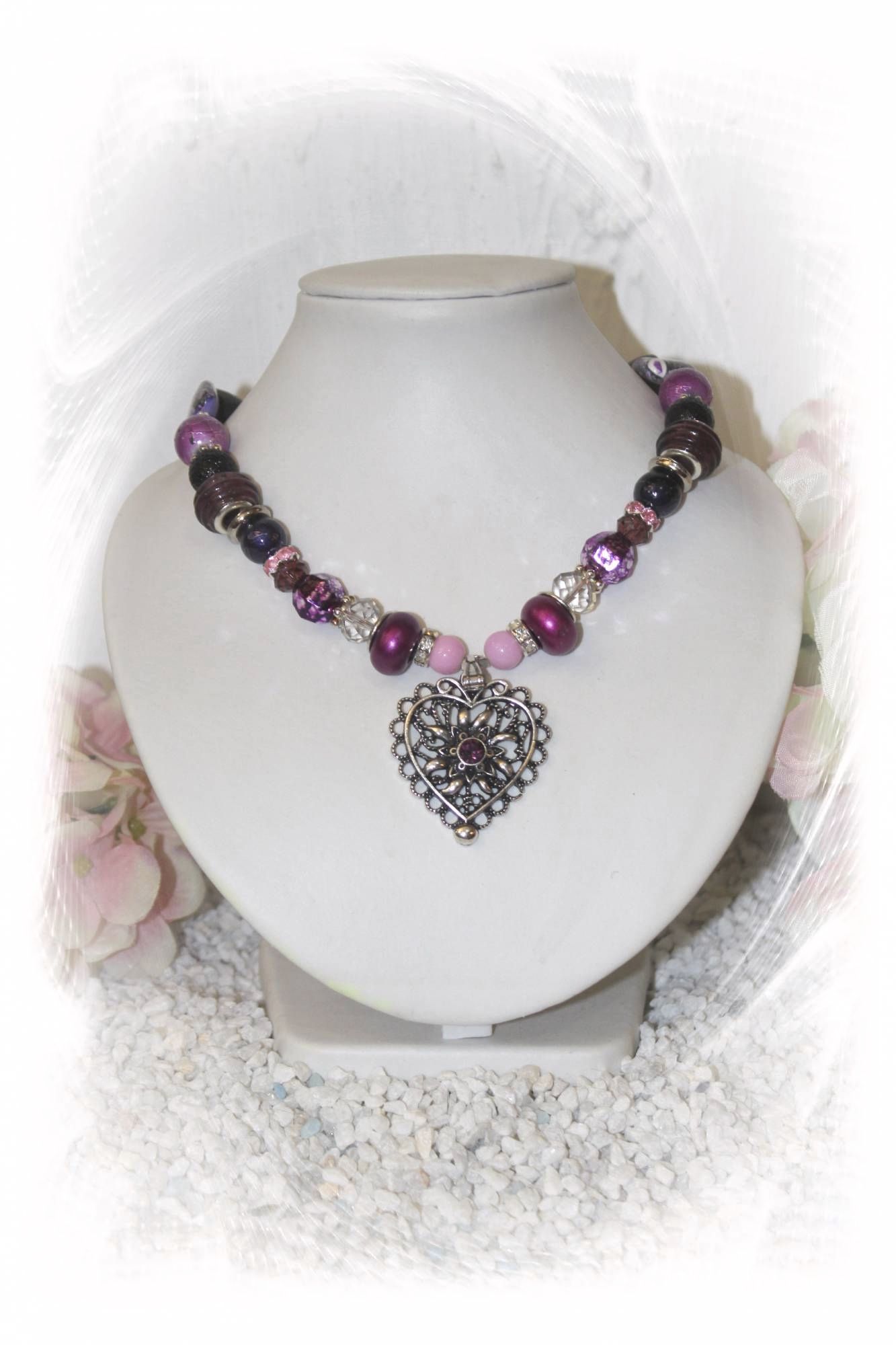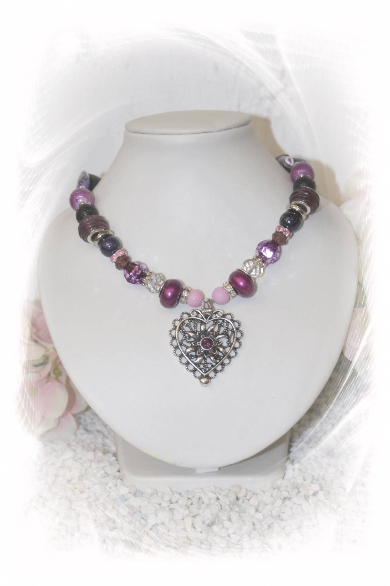 Eine herrliche Schmuckkette von der Designer und Künstlerin Elke Sieroka in dezenten kristall, pink, flieder, lila und weißen Tönen gehalten.