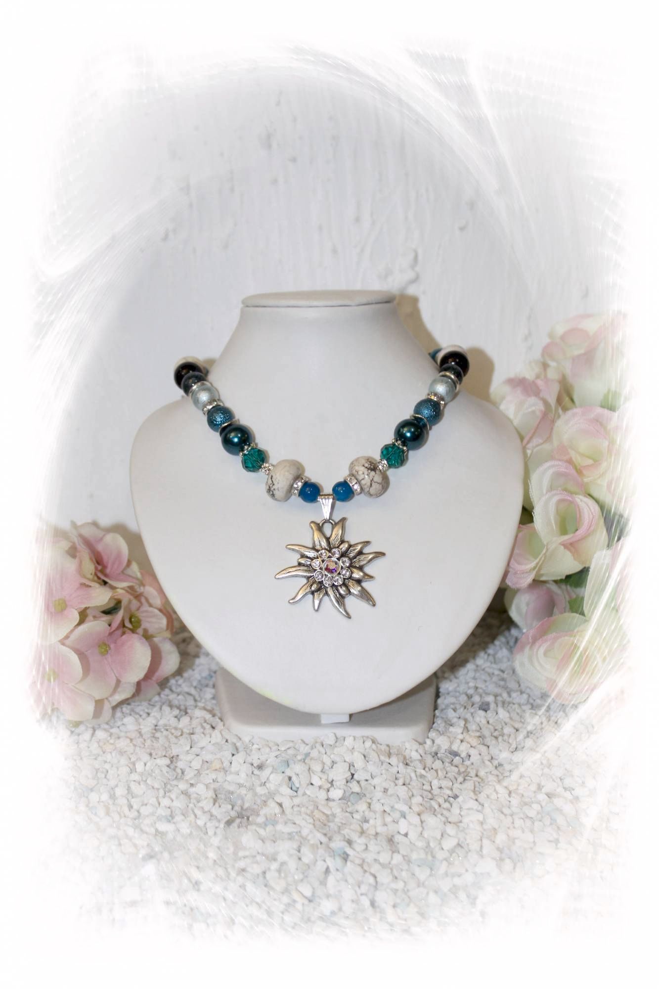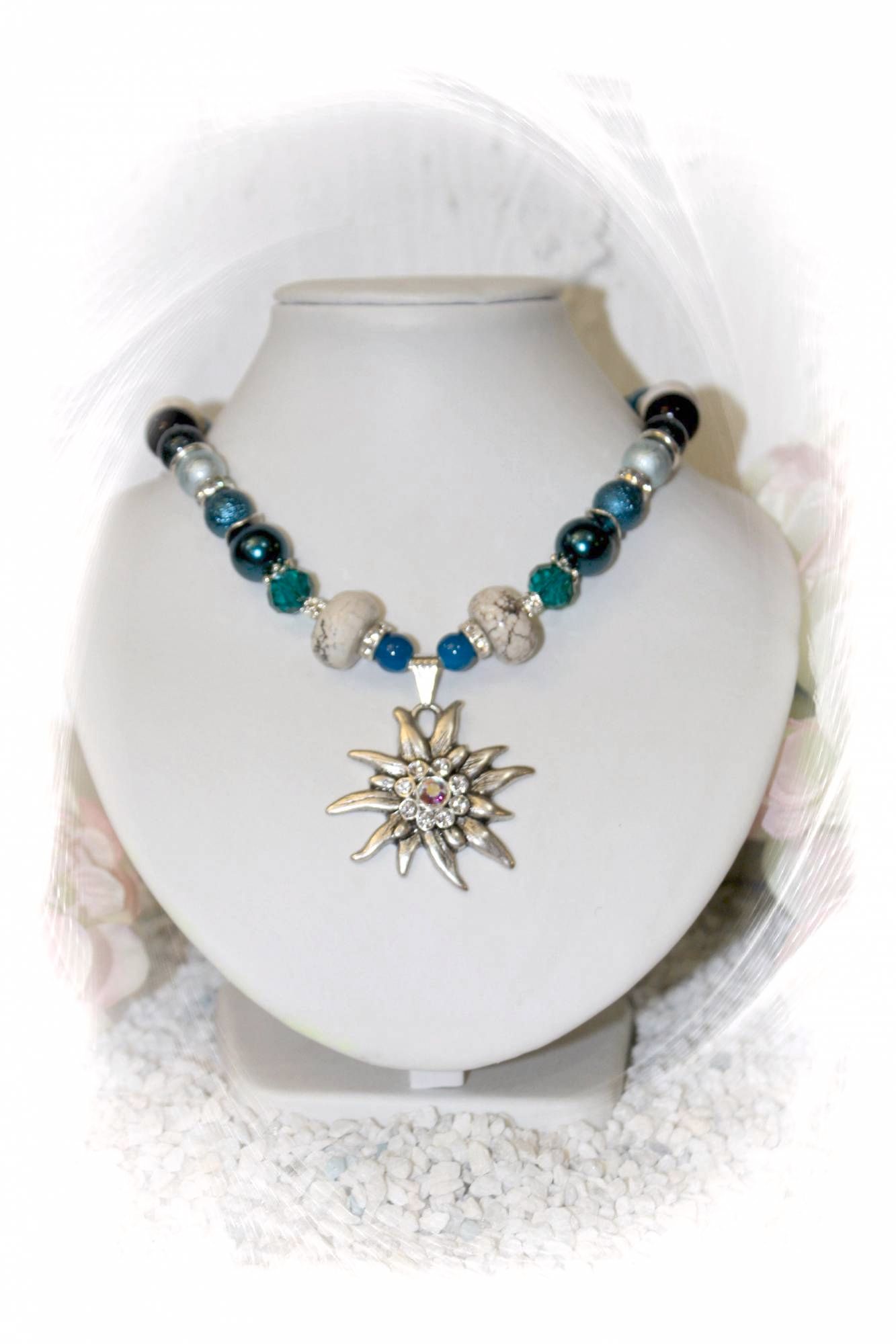 Abgerundet wird diese edle Kette durch einen ebenfalls dezenten Edelweißhänger mit echten funkelnden Swarovskisteinen.