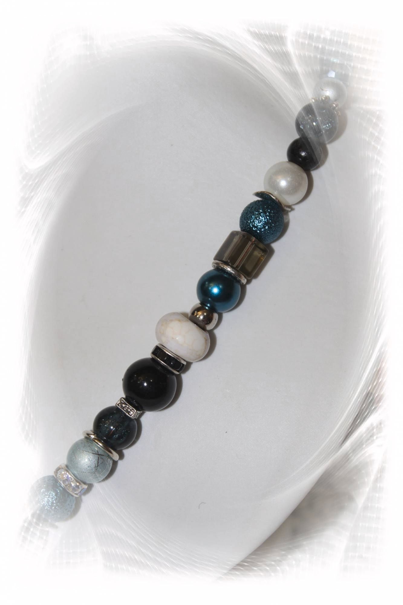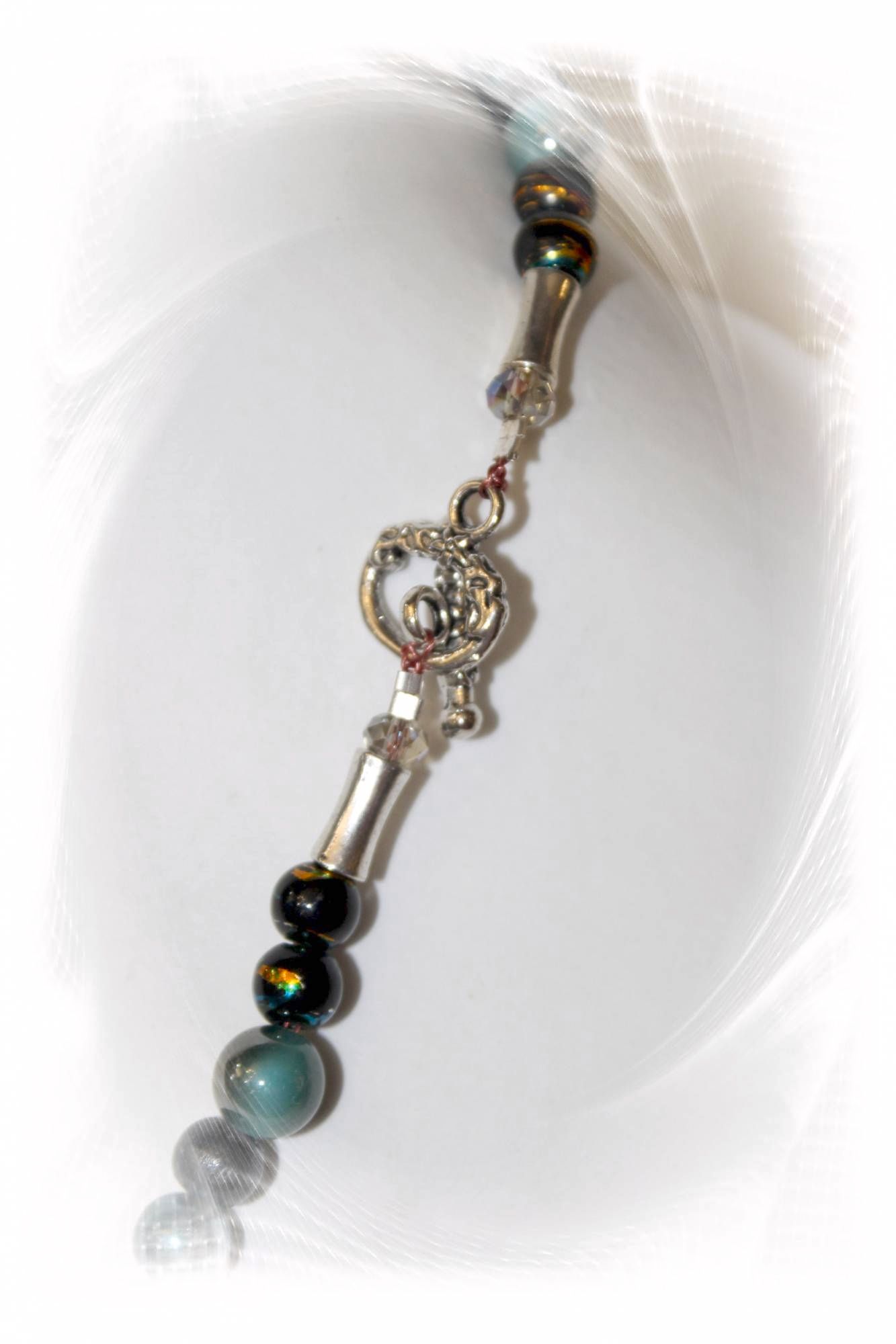 Eine herrliche Schmuckkette von der Designer und Künstlerin Elke Sieroka in dezenten weiß, blau,türkis und dunkelblauen Tönen gehalten.
