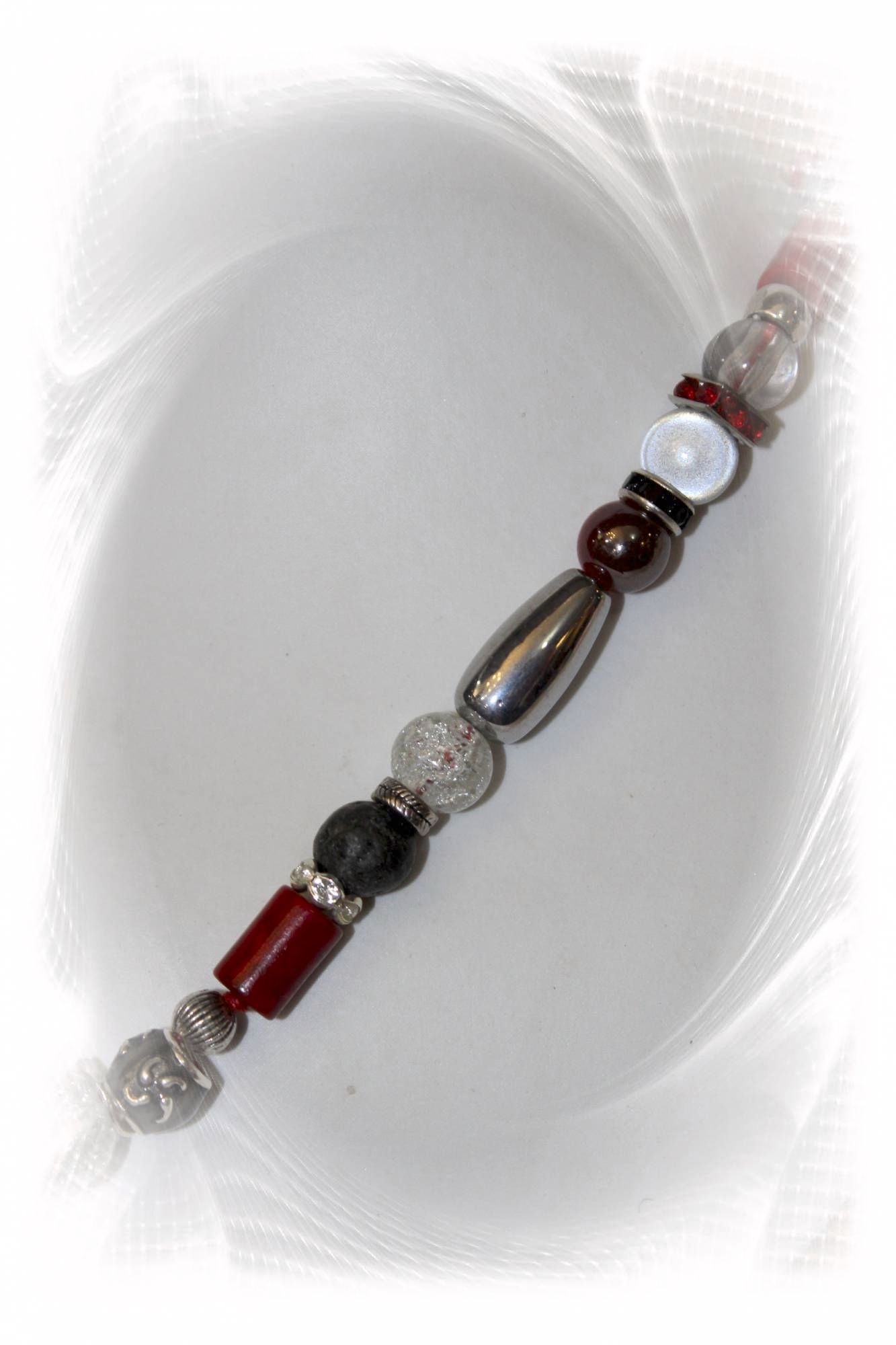 Eine herrliche Schmuckkette von der Designer und Künstlerin Elke Sieroka in dezenten silber, grau und weinroten Tönen gehalten.