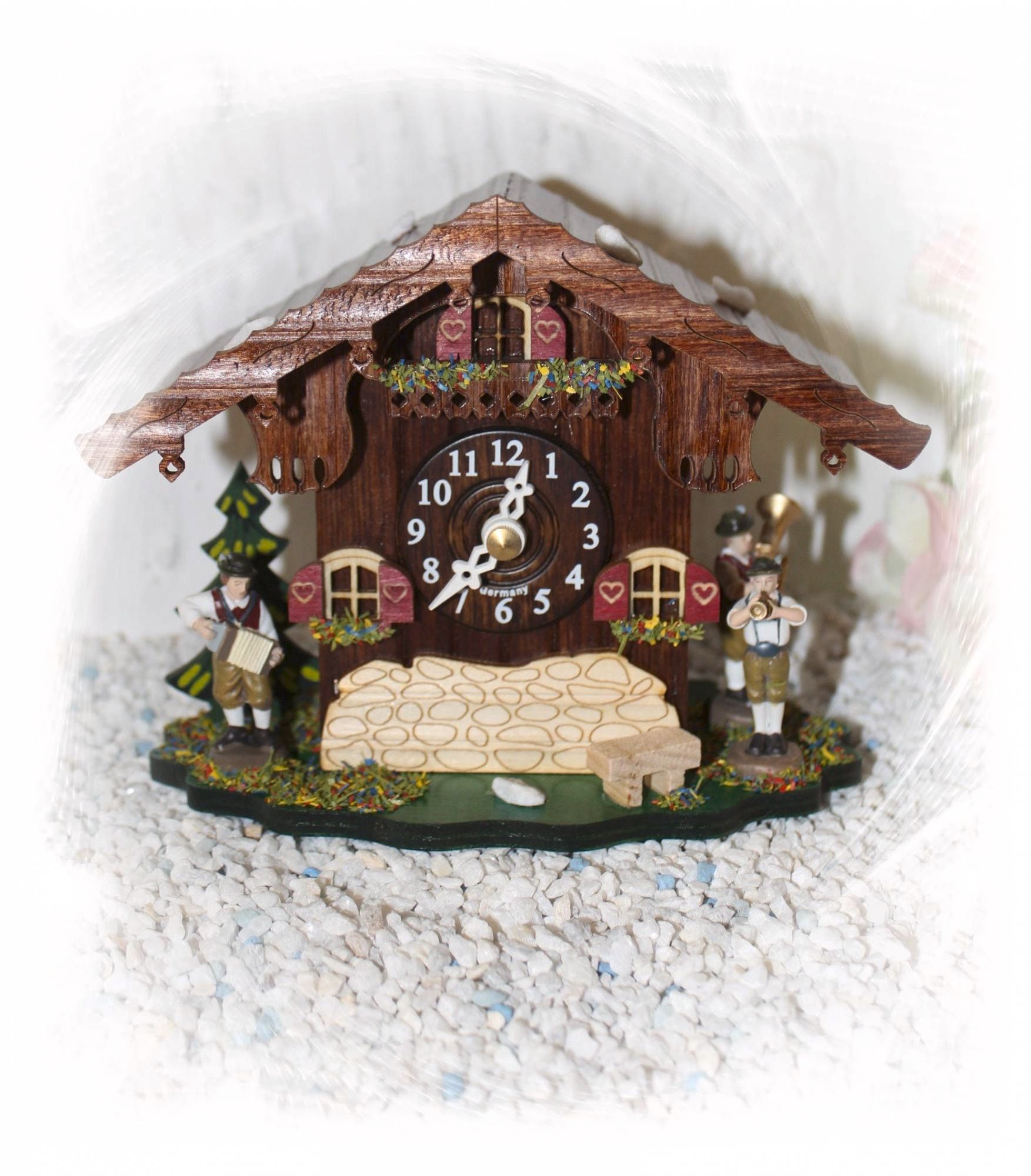 In dem Uhrenhäuschen ist ein Quarzwerk und zu jeder Stunde ertöhnt der Kuckuckruf.