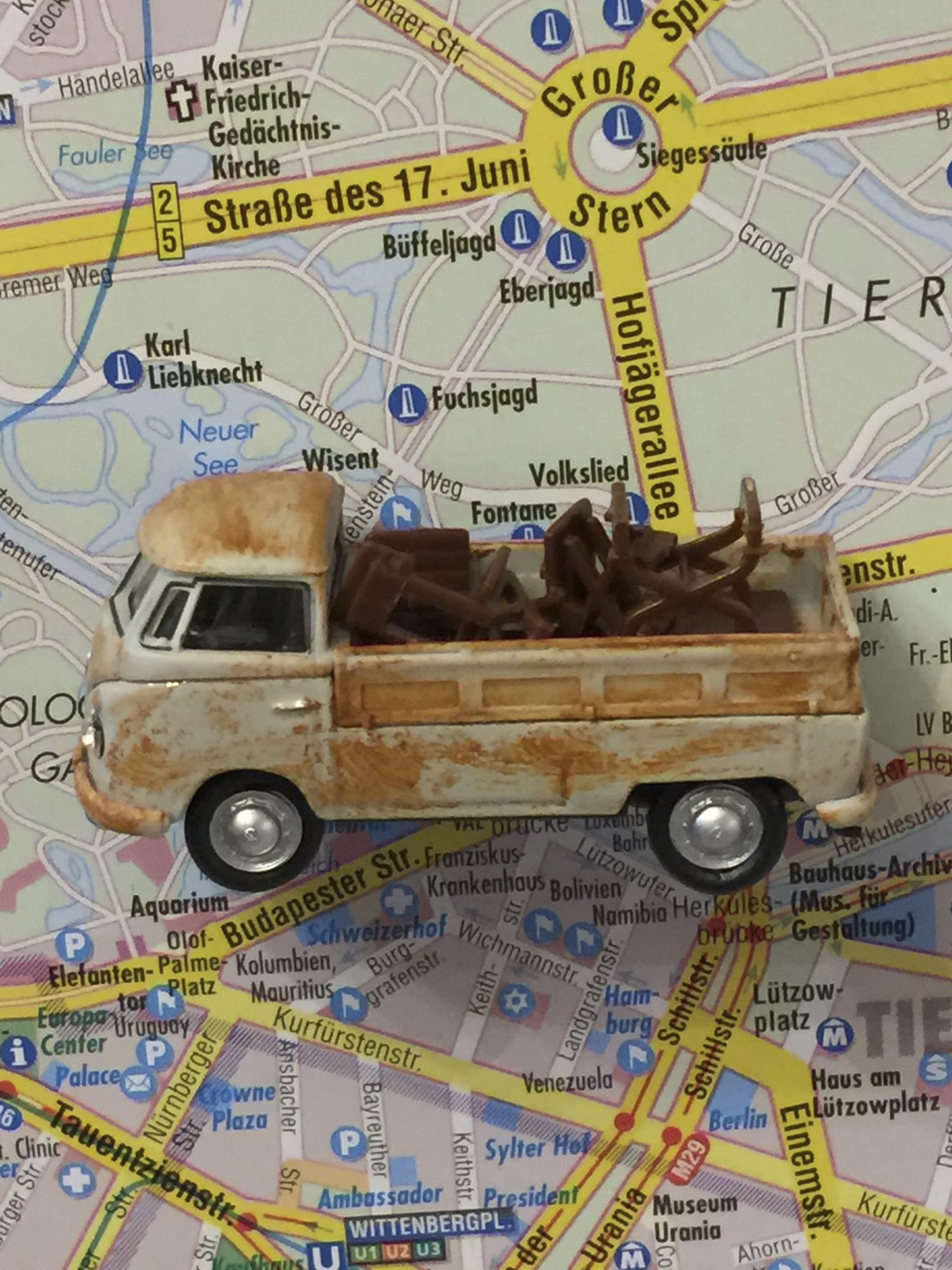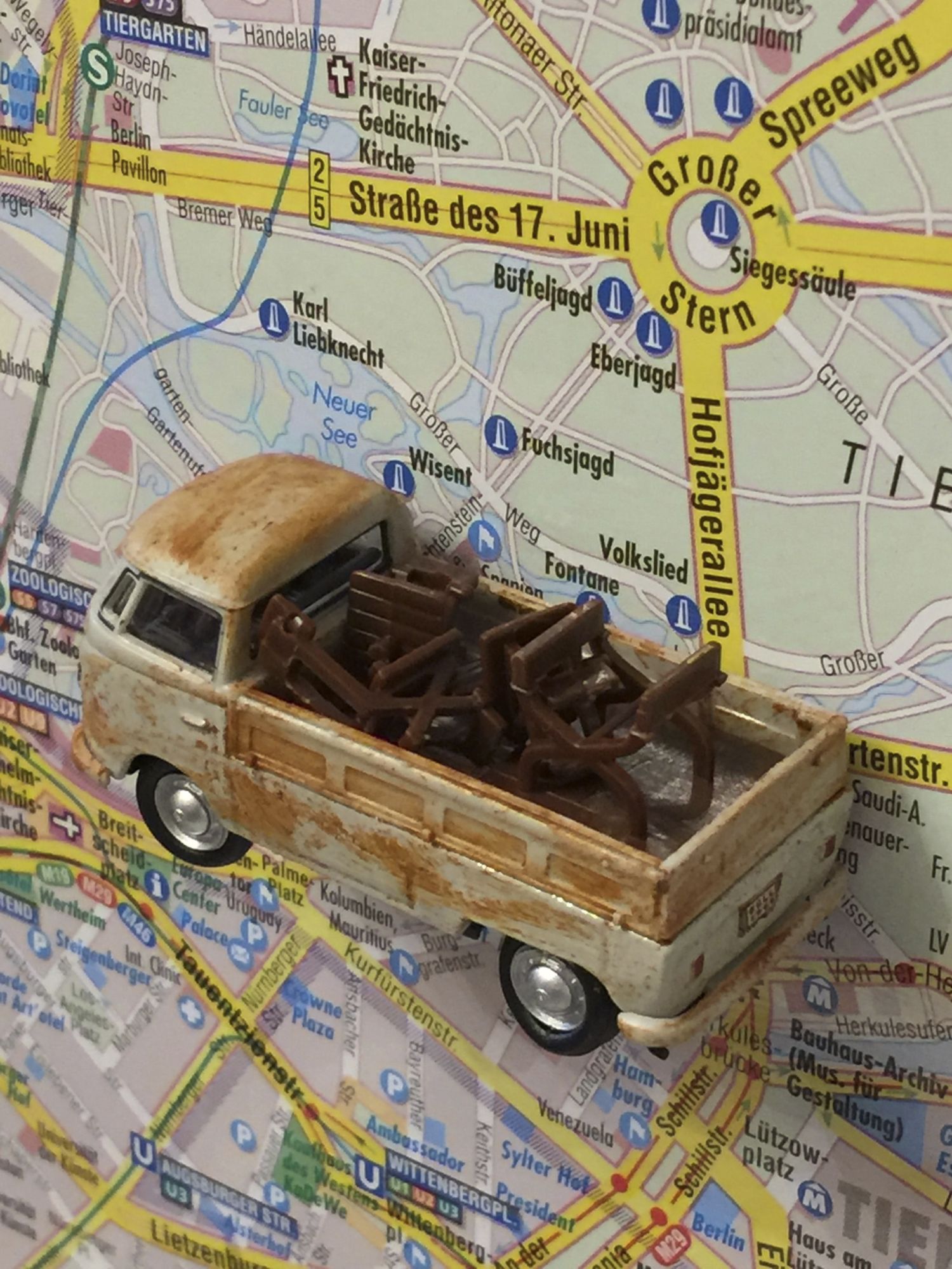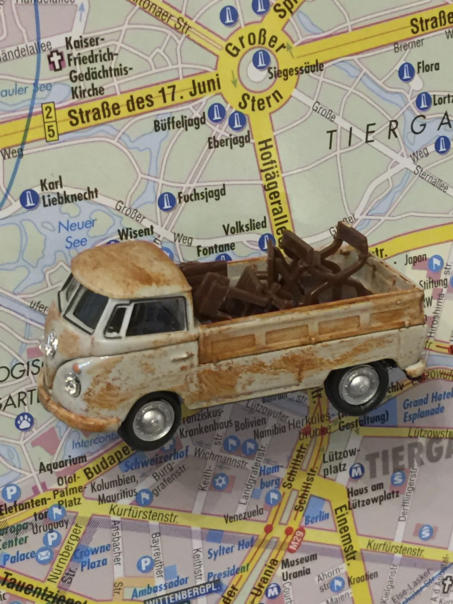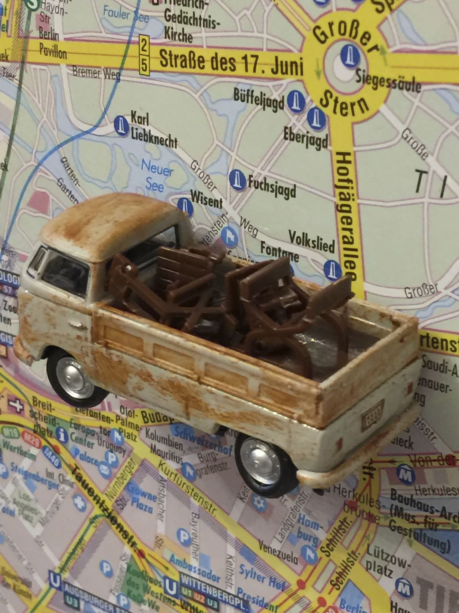 Das Fahrzeug wird von mir gerostet und mit Tisch und Stühlen beladen.
