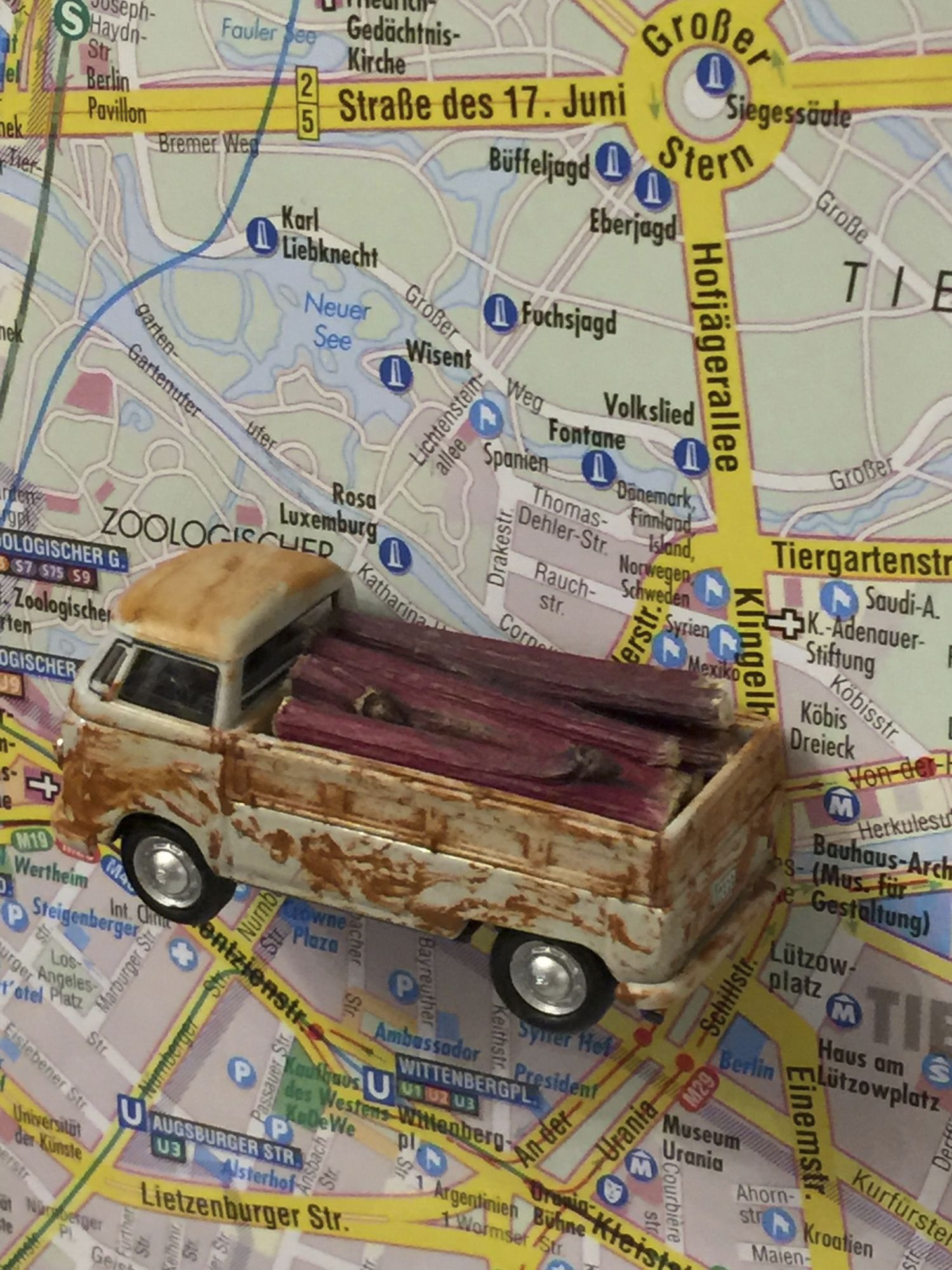 Das Fahrzeug wird von mir gerostet und ist mit Weidenstöcken beladen.