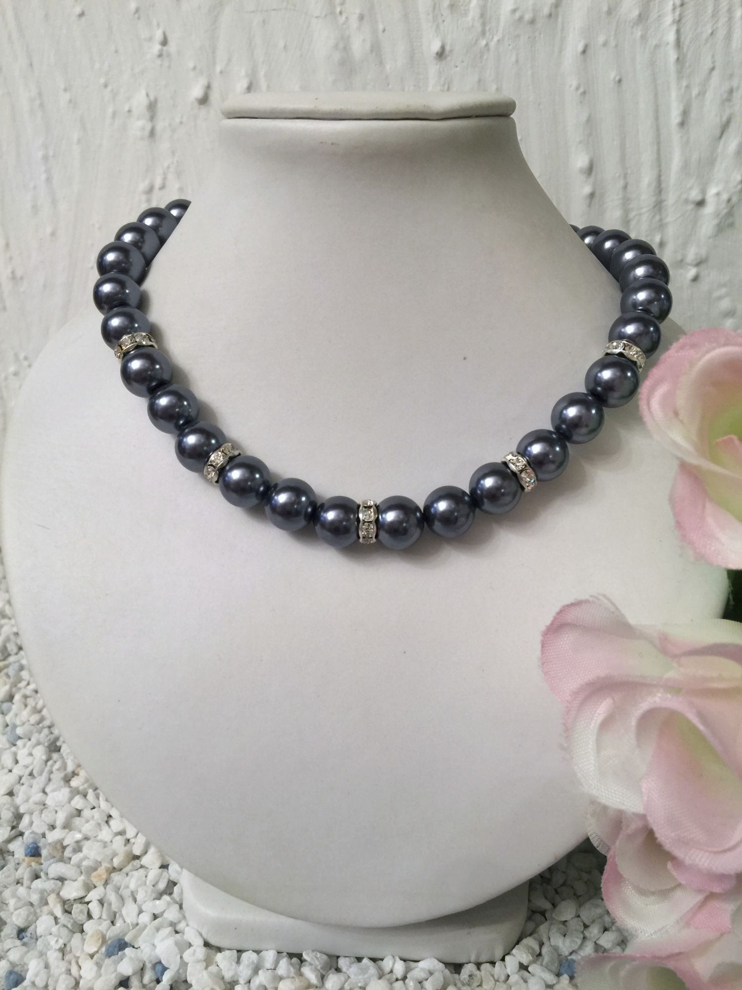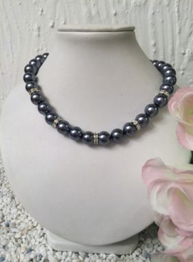 Sehr apart und fein gearbeitete Wachs-Perlenkette mit glitzernden Schmucksteinchen.