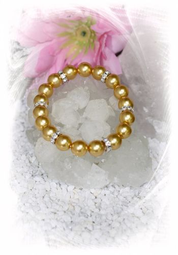 Sehr apart und fein gearbeitetes Wachs-Perlenarmband mit glänzenden Schmucksteinen.