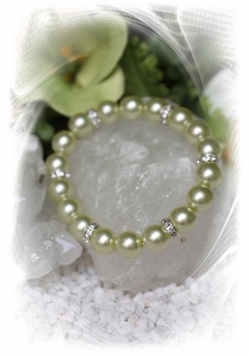Sehr apart und fein gearbeitetes Wachs-Perlenarmband mit glänzenden Schmucksteinen.