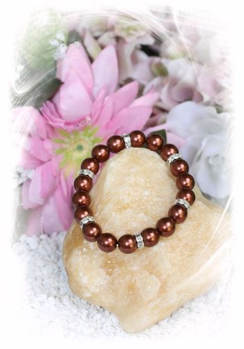 Sehr apart und fein gearbeitetes Wachs-Perlenarmband mit glänzenden Schmucksteinen.