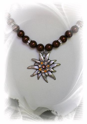 Sehr apart, edel und fein gearbeitete Wachs-Perlenkette mit Edelweißanhänger