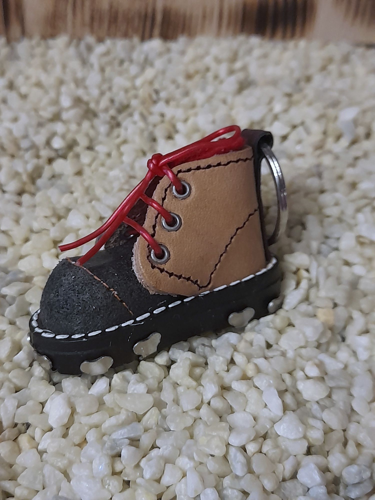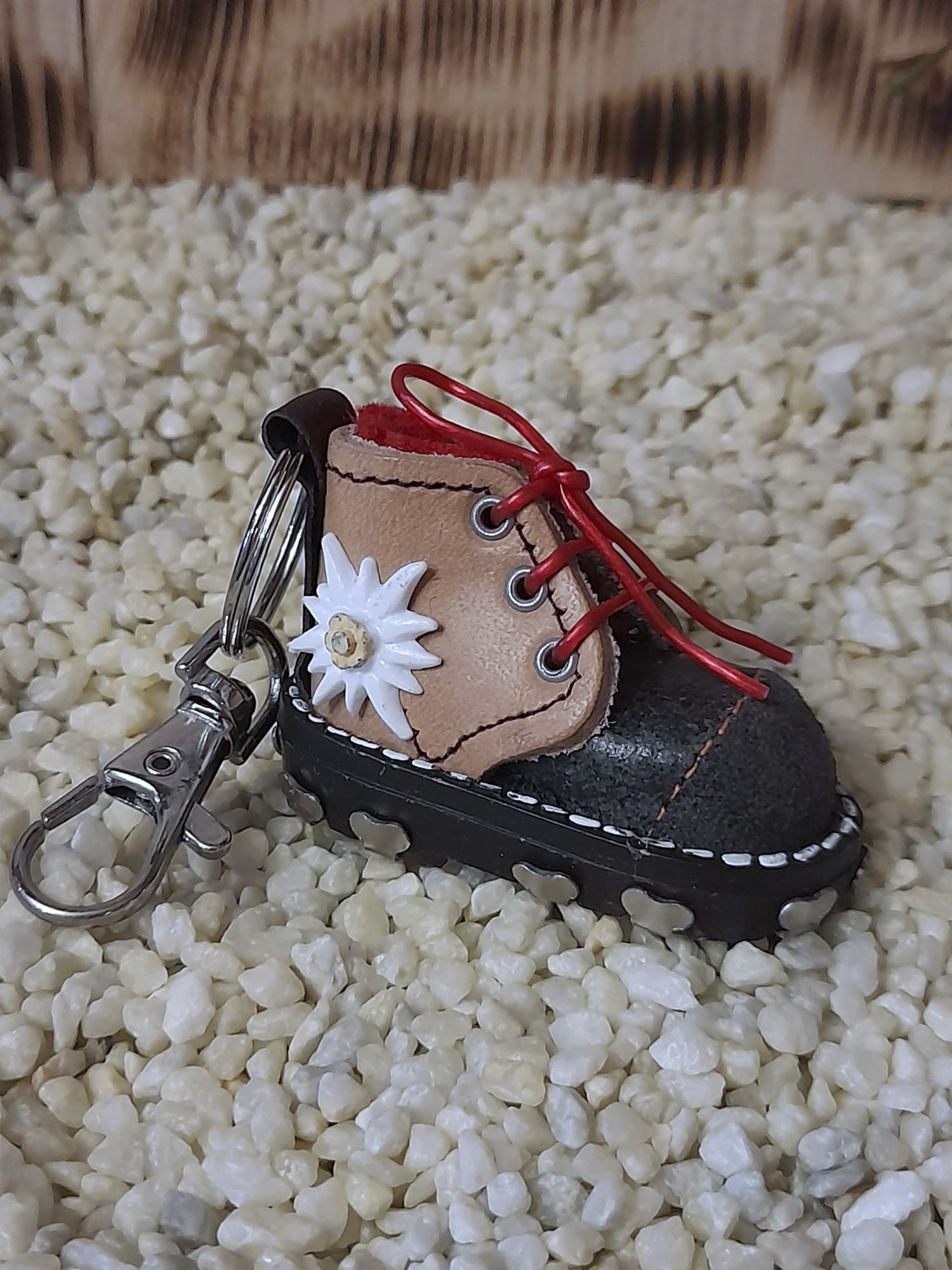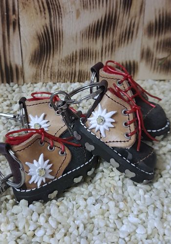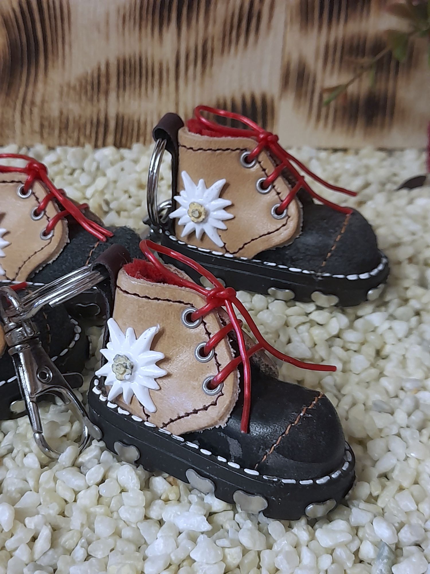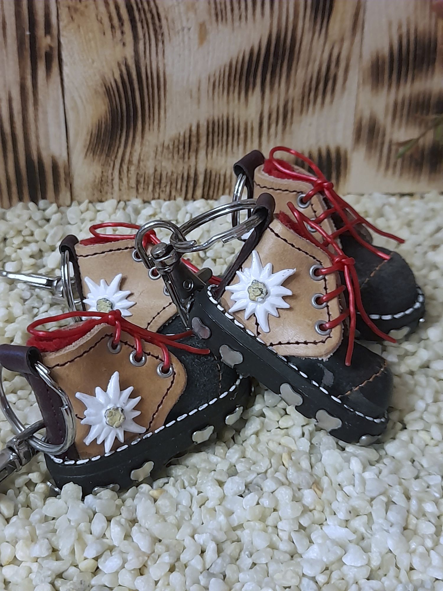 Diese kleinen Miniatur Wanderschuhe sind liebevoll in aufwendiger Handarbeit gearbeitet.