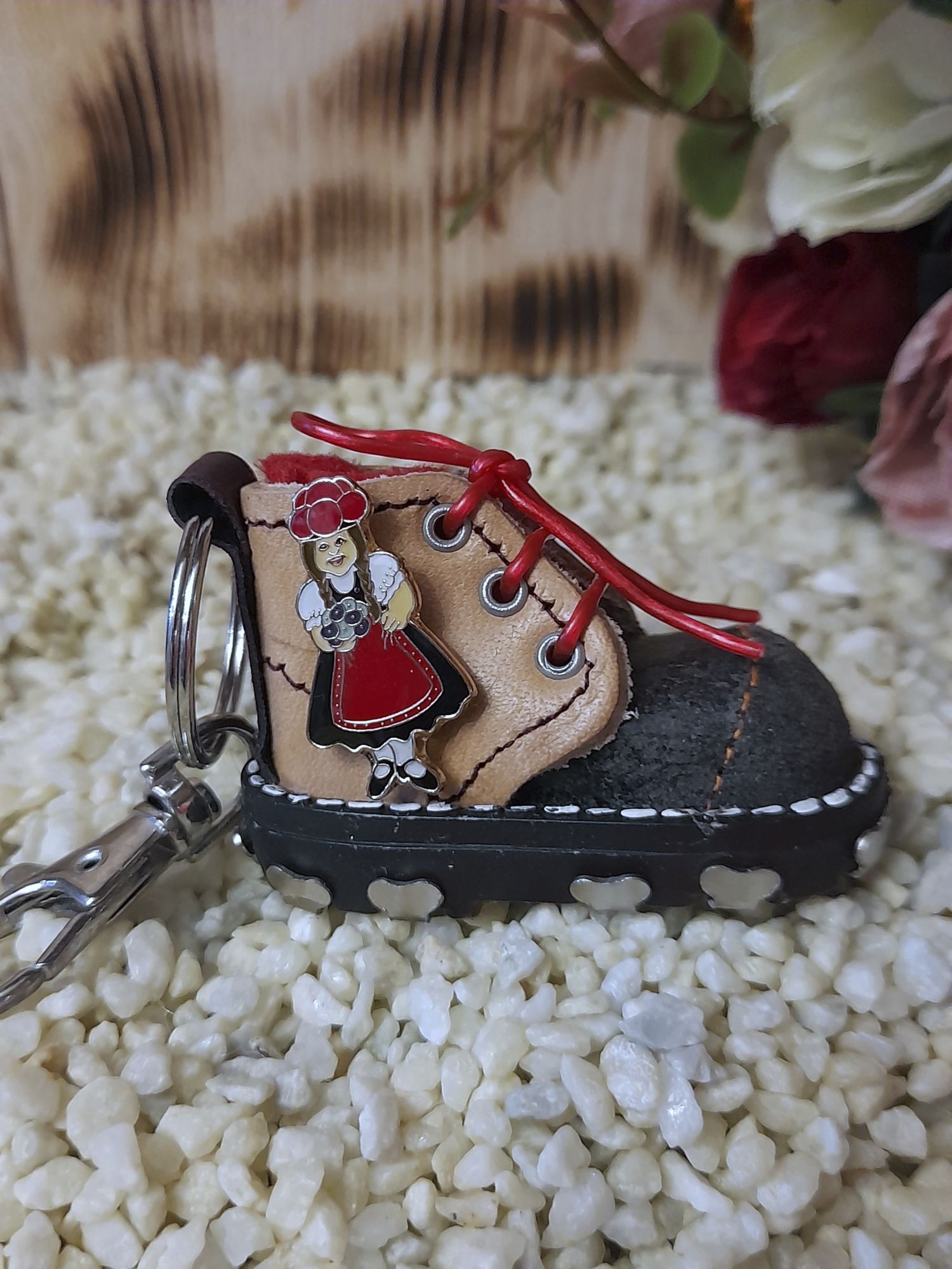 Diese kleinen Miniatur Wanderschuhe sind liebevoll in aufwendiger Handarbeit gearbeitet.