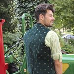 Hier zeigen wir Ihnen eine schöne Trachtenweste aus Samt in edlem grün, mit dezenten aufgesticketen Blümchen.