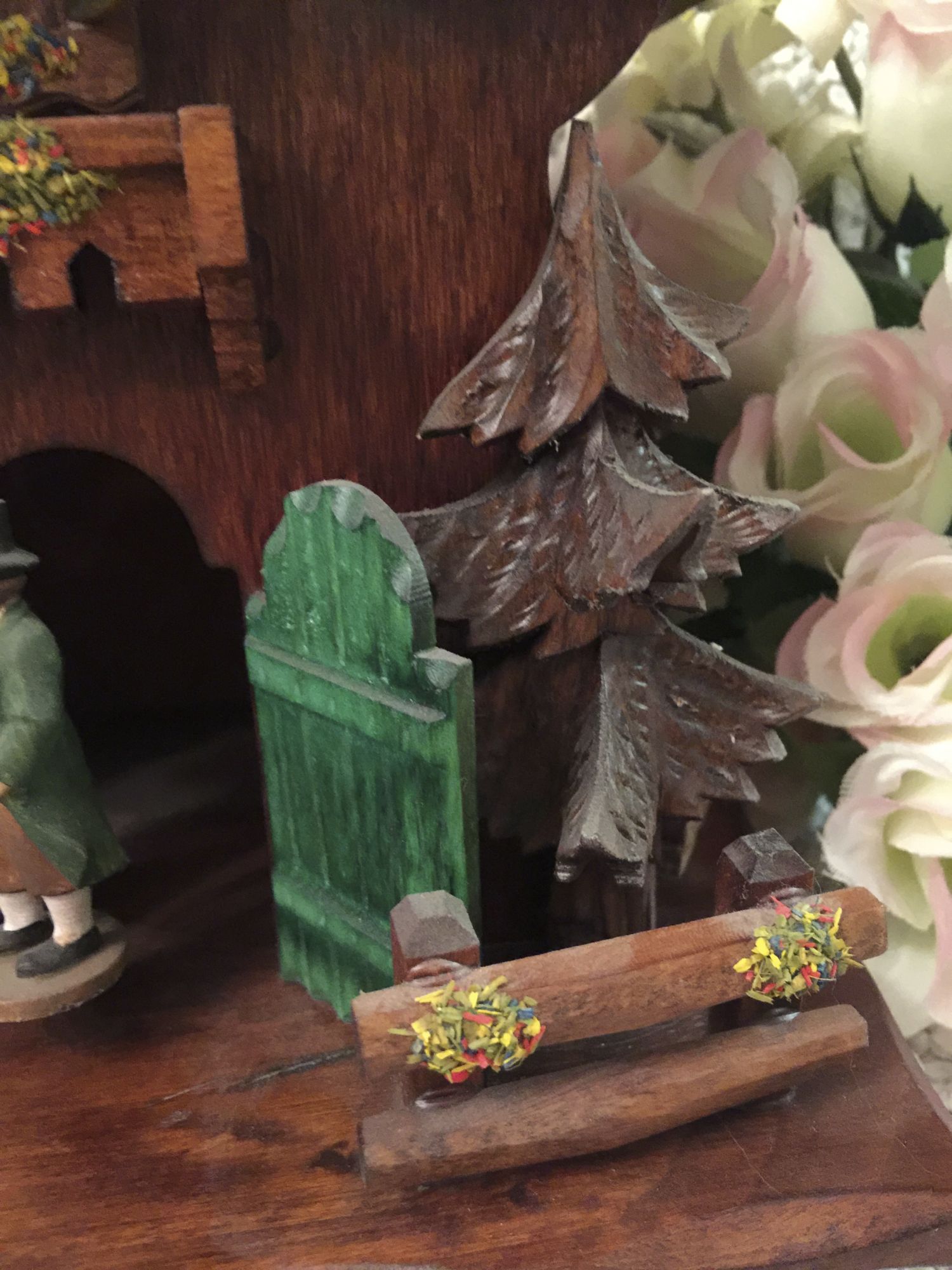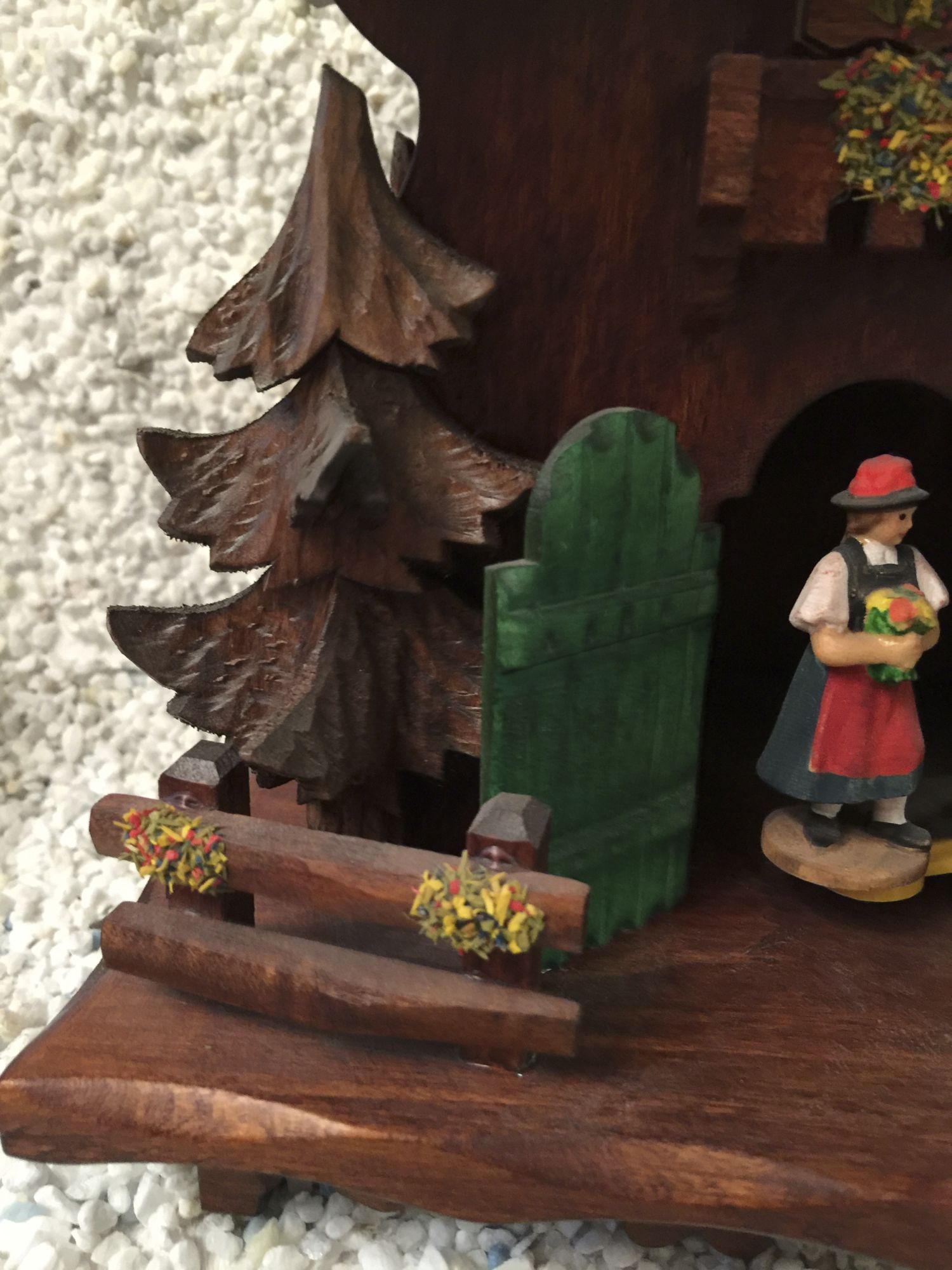 Hier zeigen wir Ihnen ein herrliches Wetterhäusle der absolut meisterlichen Handwerkskunst mit Laserfenster, Balkon, Fensterläden handbemahlten und geschnitzten Schwarzwaldfiguren und Schwarzwaldtannen.