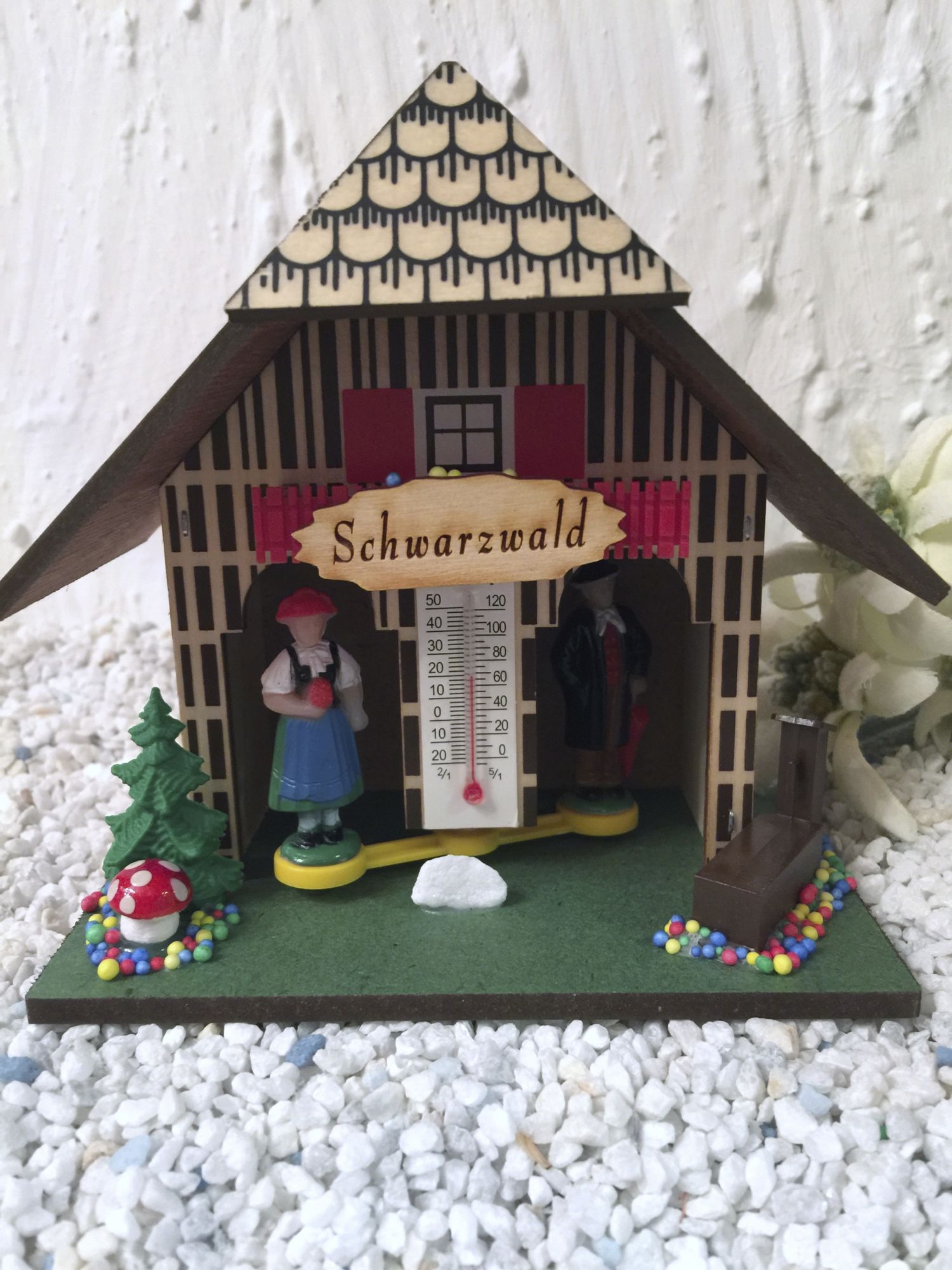 Hier zeigen wir Ihnen ein niedliches Schwarzwälder Wetterhäusle aus Holz mit Schindeldachoptik und kleinen Details aus dem Schwarzwald.