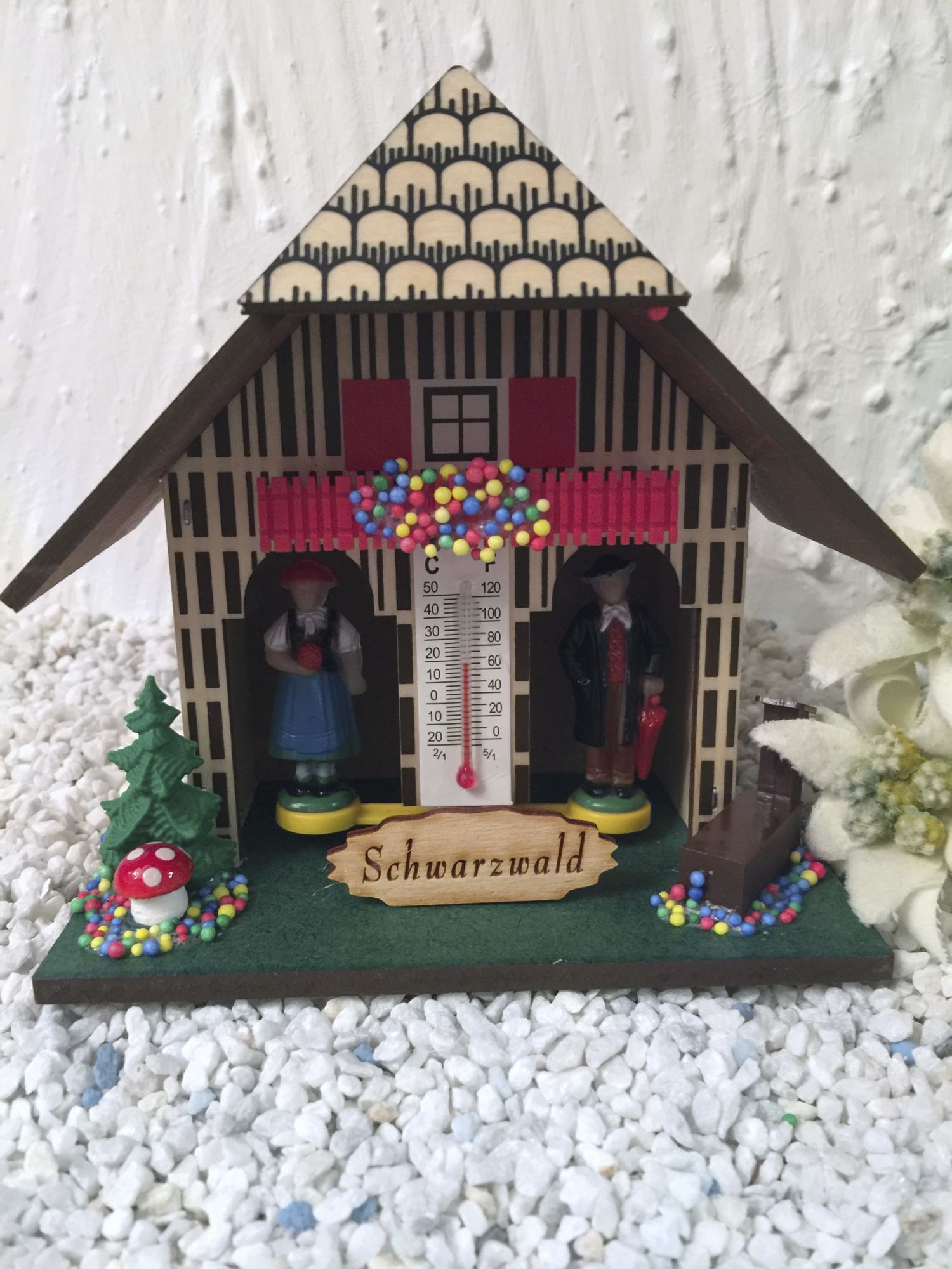 Hier zeigen wir Ihnen ein niedliches Schwarzwälder Wetterhäusle aus Holz mit Schindeldachoptik und kleinen Details aus dem Schwarzwald.