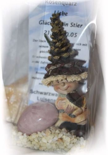 Ganz bezaubernde Tannenzapfenwichtele aus Kunstharz und echtem Halbedelsteinherz in Deinem Sternbild.