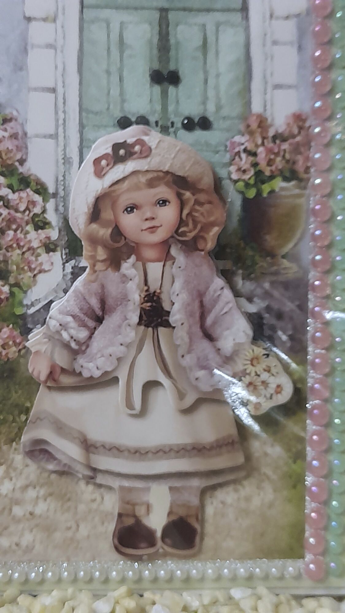Material: Karton, Papier, Perlen, Schmucksteinchen