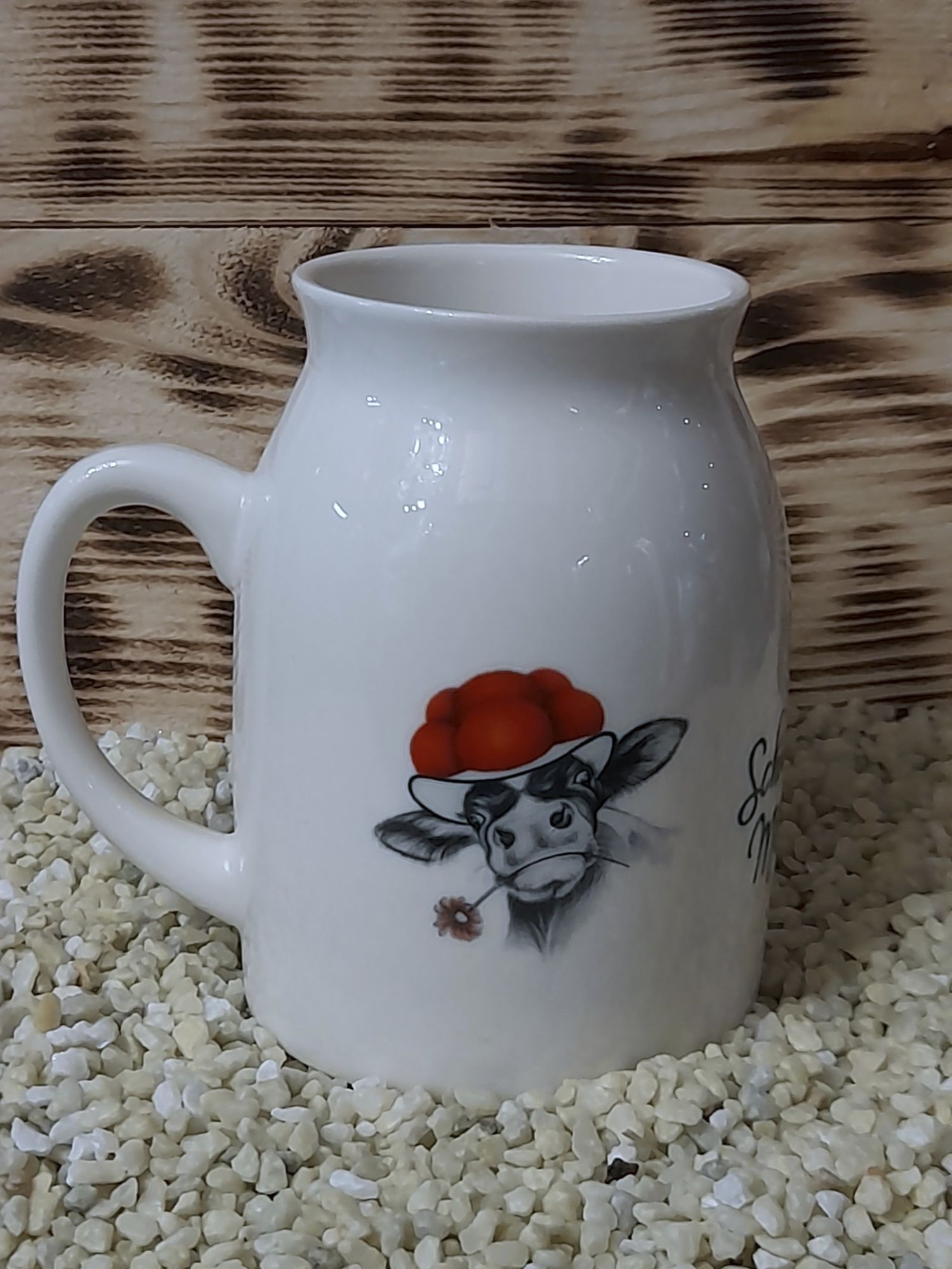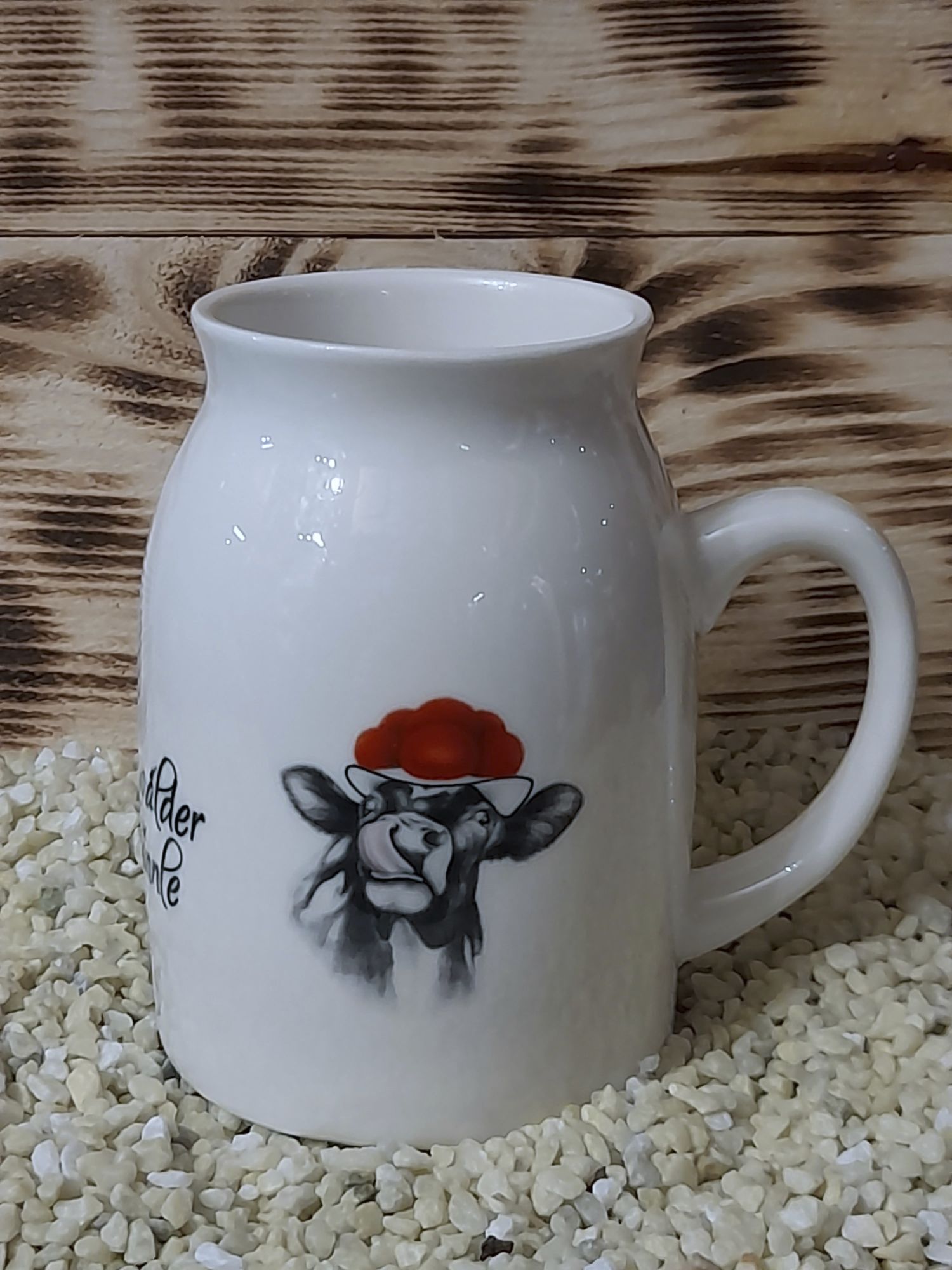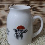 Mit einer lustigen Milchkuh im Glanzdekor.