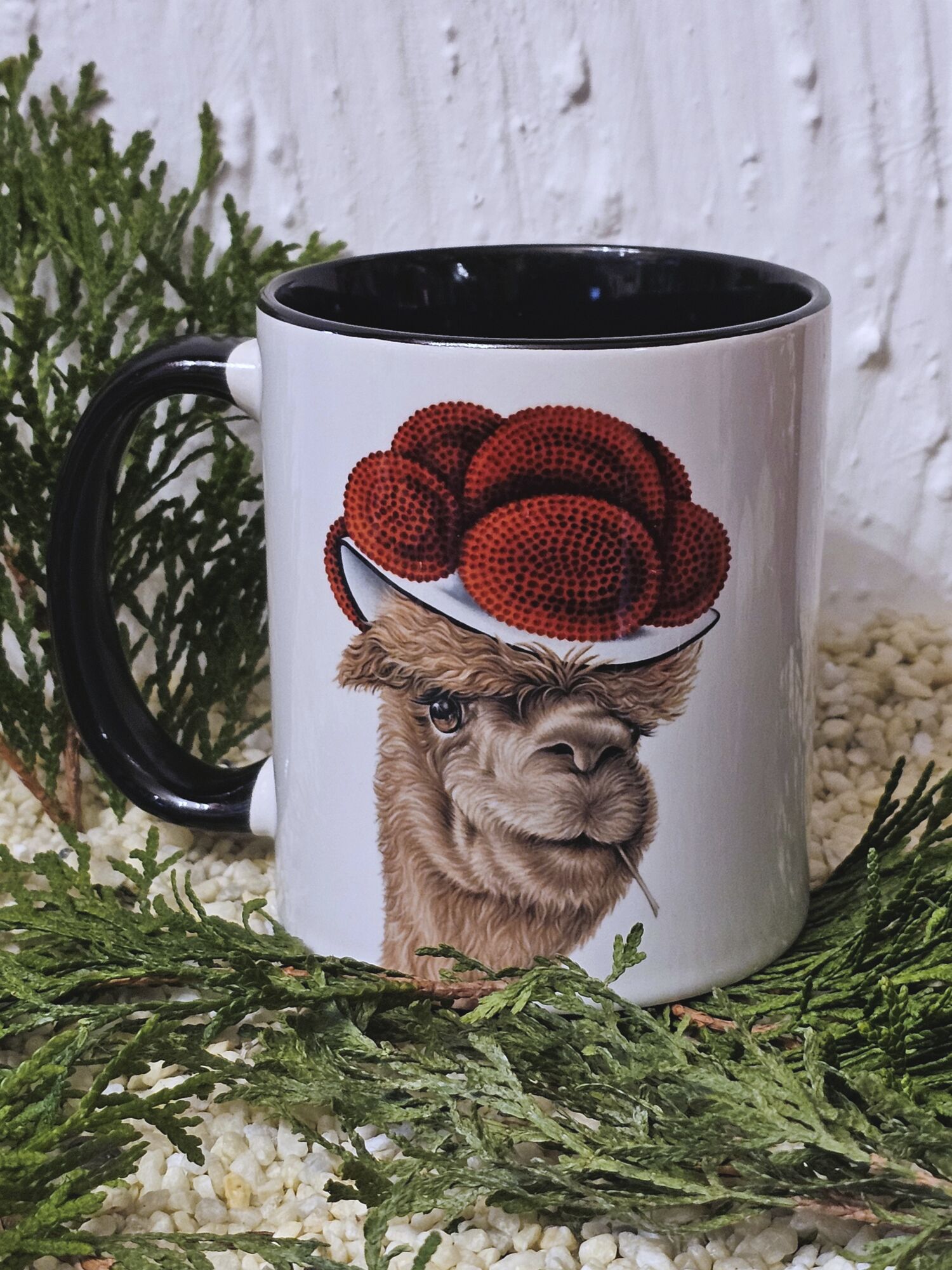 Eine traumhafte Tasse mit den niedlichen Alpakas aus dem Schwarzwald mit Bollenhut.