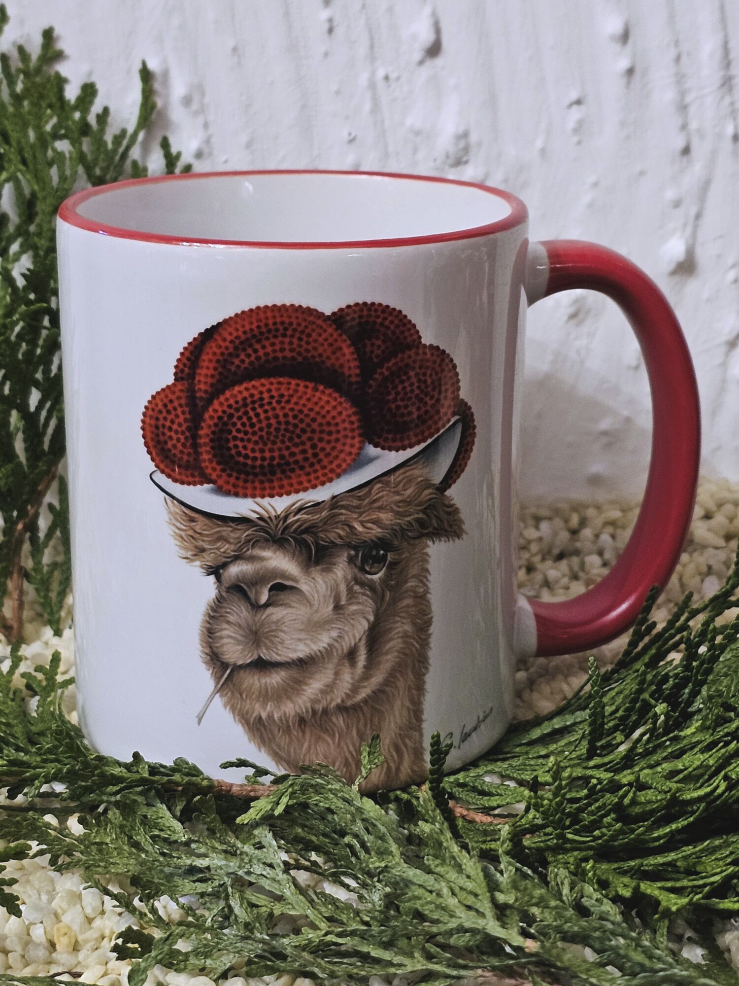 Eine traumhafte Tasse mit den niedlichen Alpakas aus dem Schwarzwald mit Bollenhut.