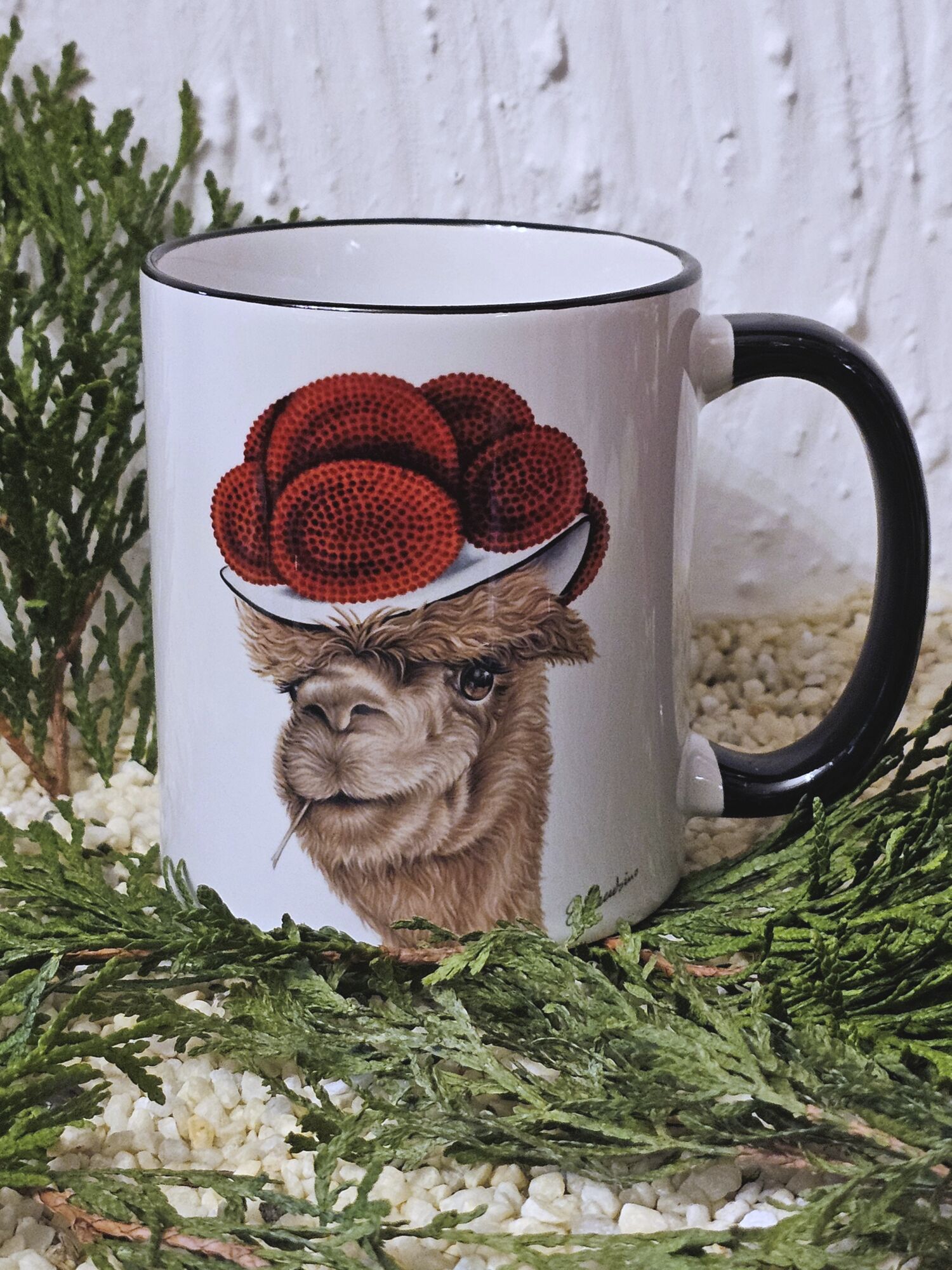 Eine traumhafte Tasse mit den niedlichen Alpakas aus dem Schwarzwald mit Bollenhut.