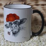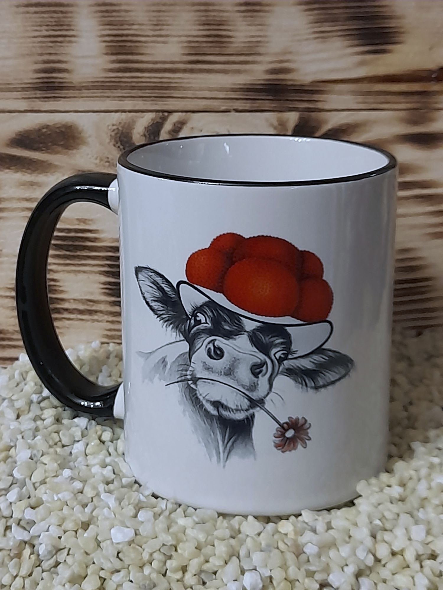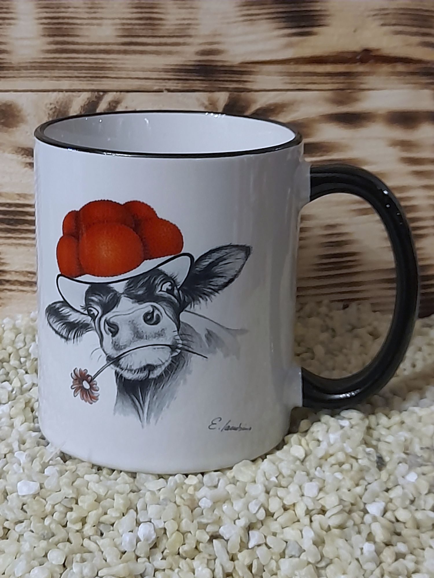 Schwarzwaldtasse "Kuh Fanny" schwarzer Rand